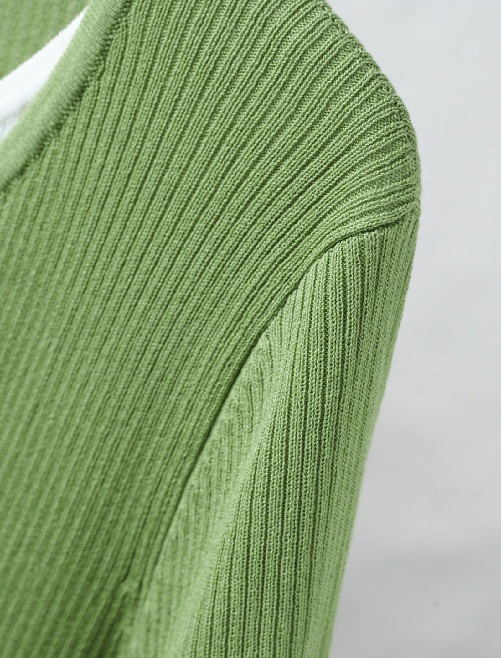 Leaf Green Ribbed V-Neck Layered Knit Top