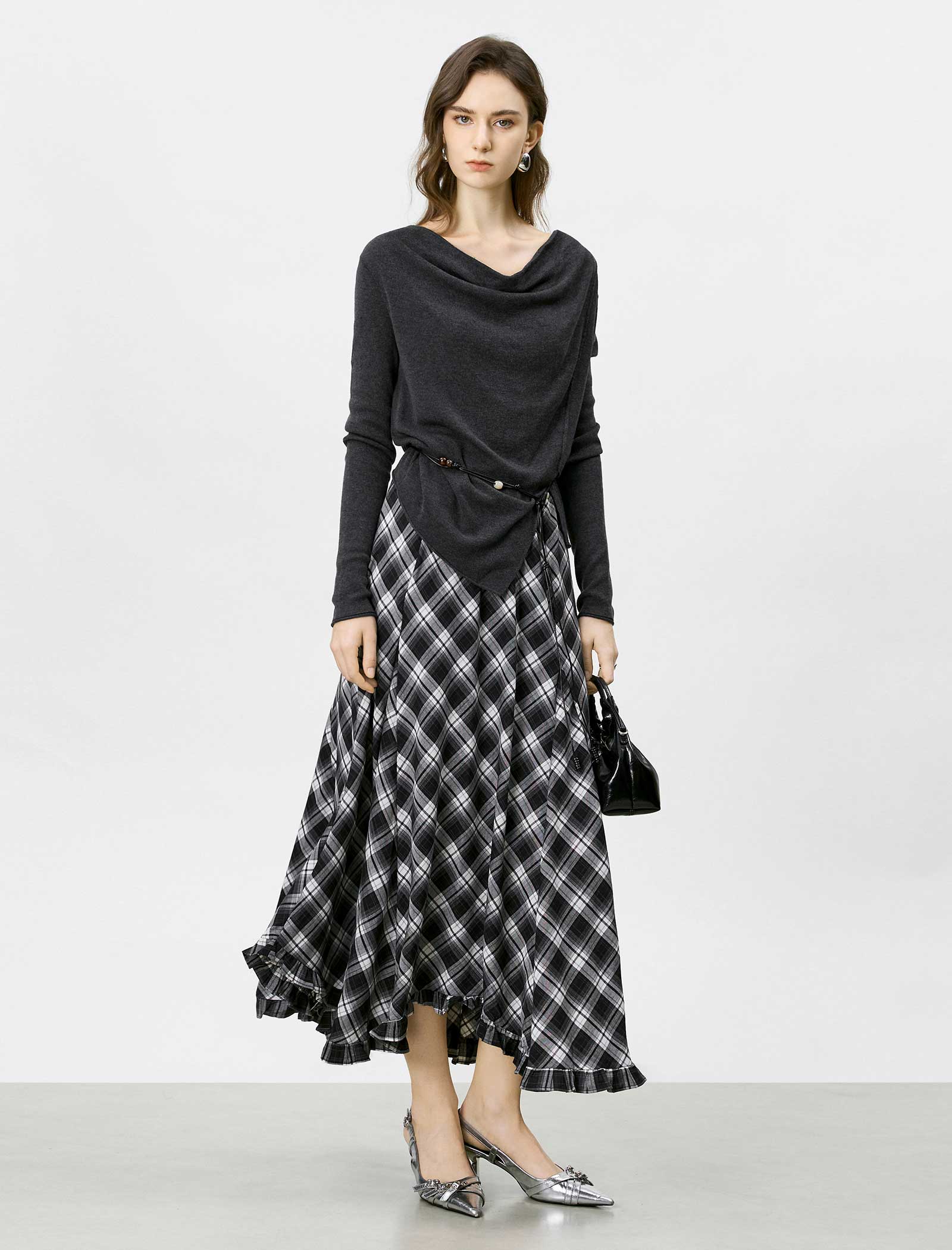 Cowl Neck Asymmetrical Knit Top