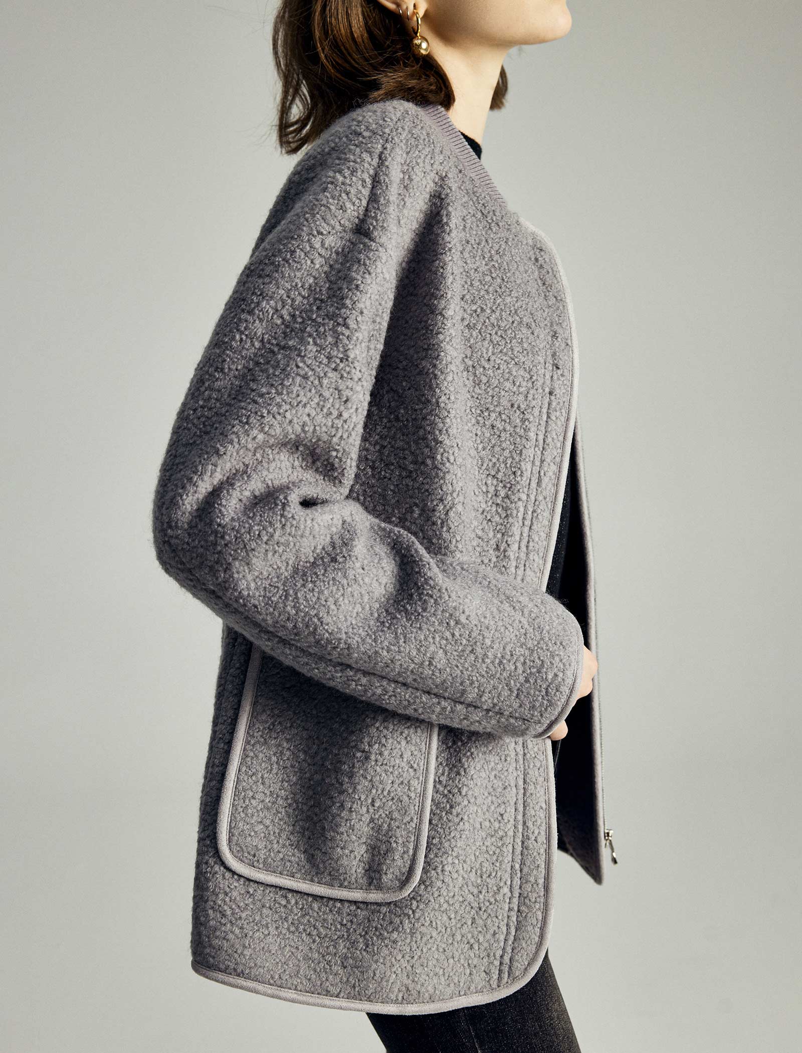 Wool-Blend Pocket Detail Bomber Jacket