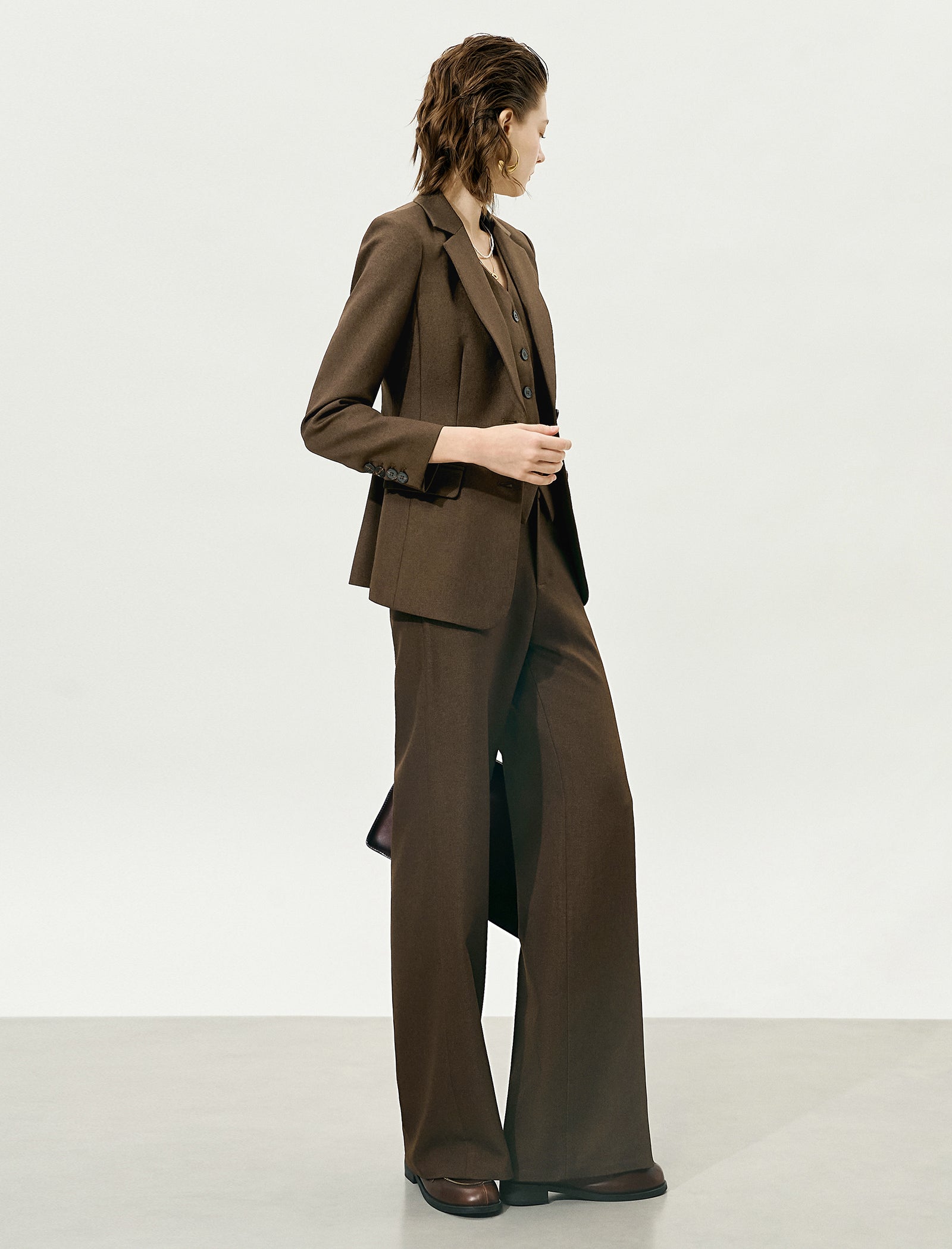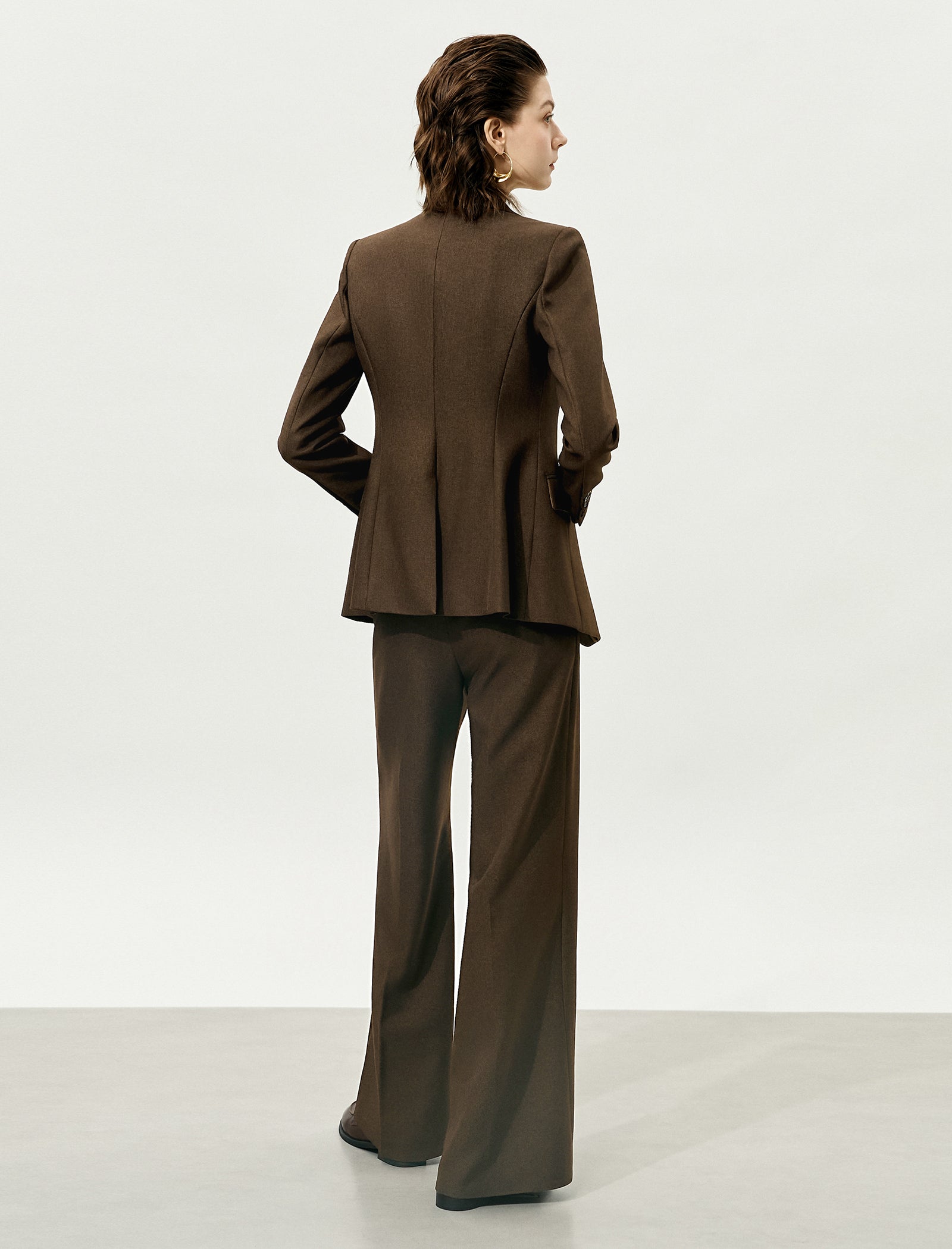 Brown High-Waisted Loose Straight Leg Suit Pants