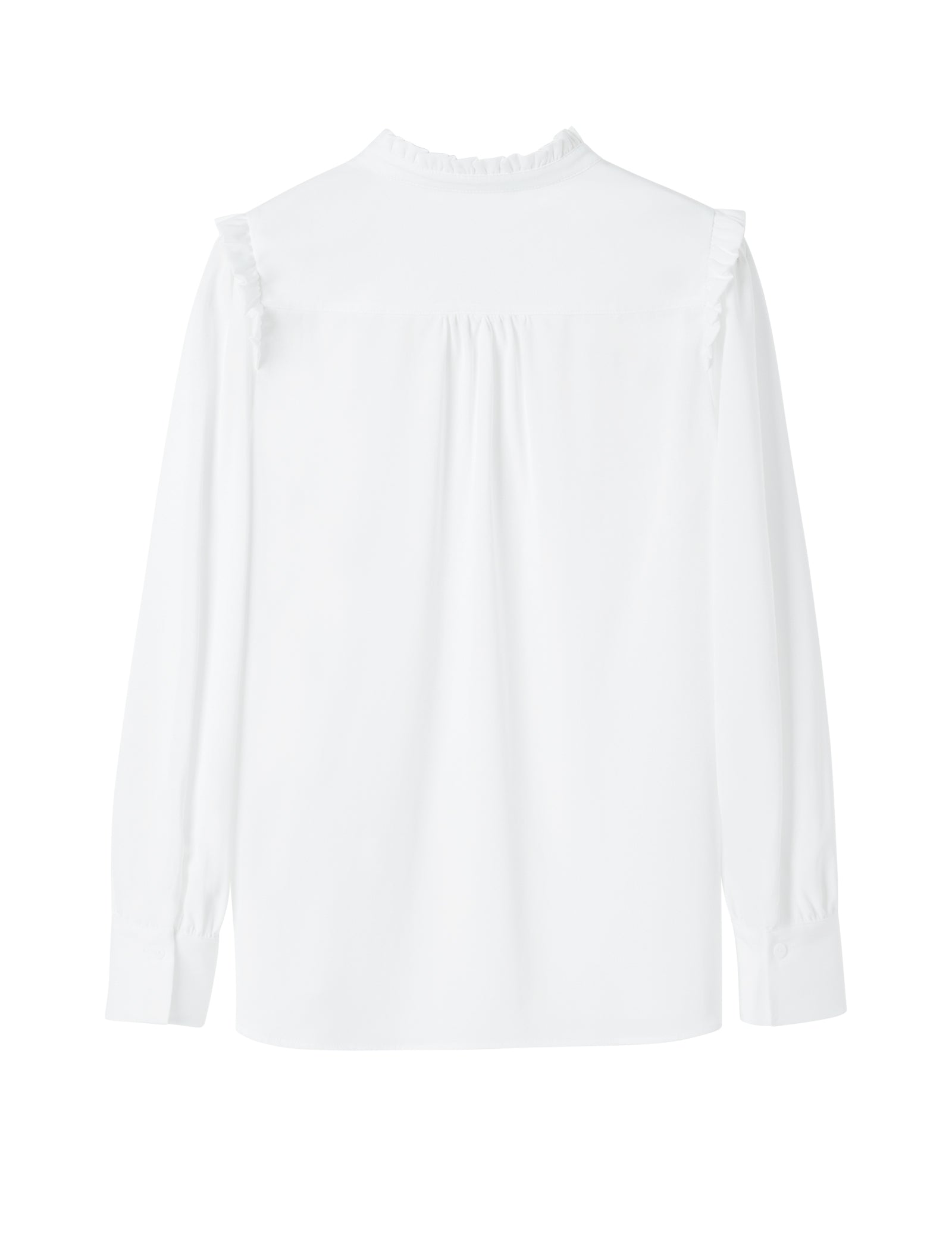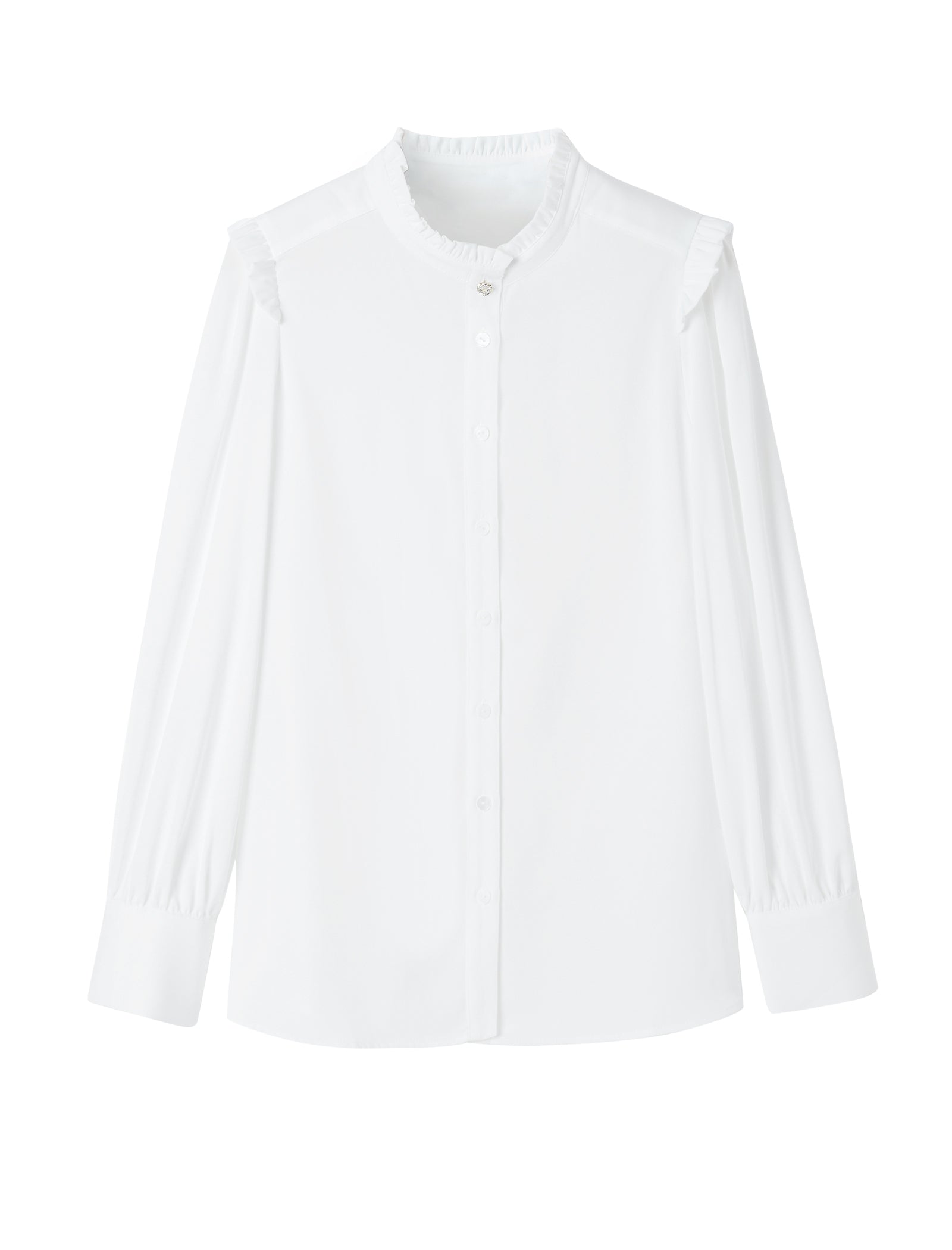 1. Ruffled collar and shoulder details for a touch of feminine charm.