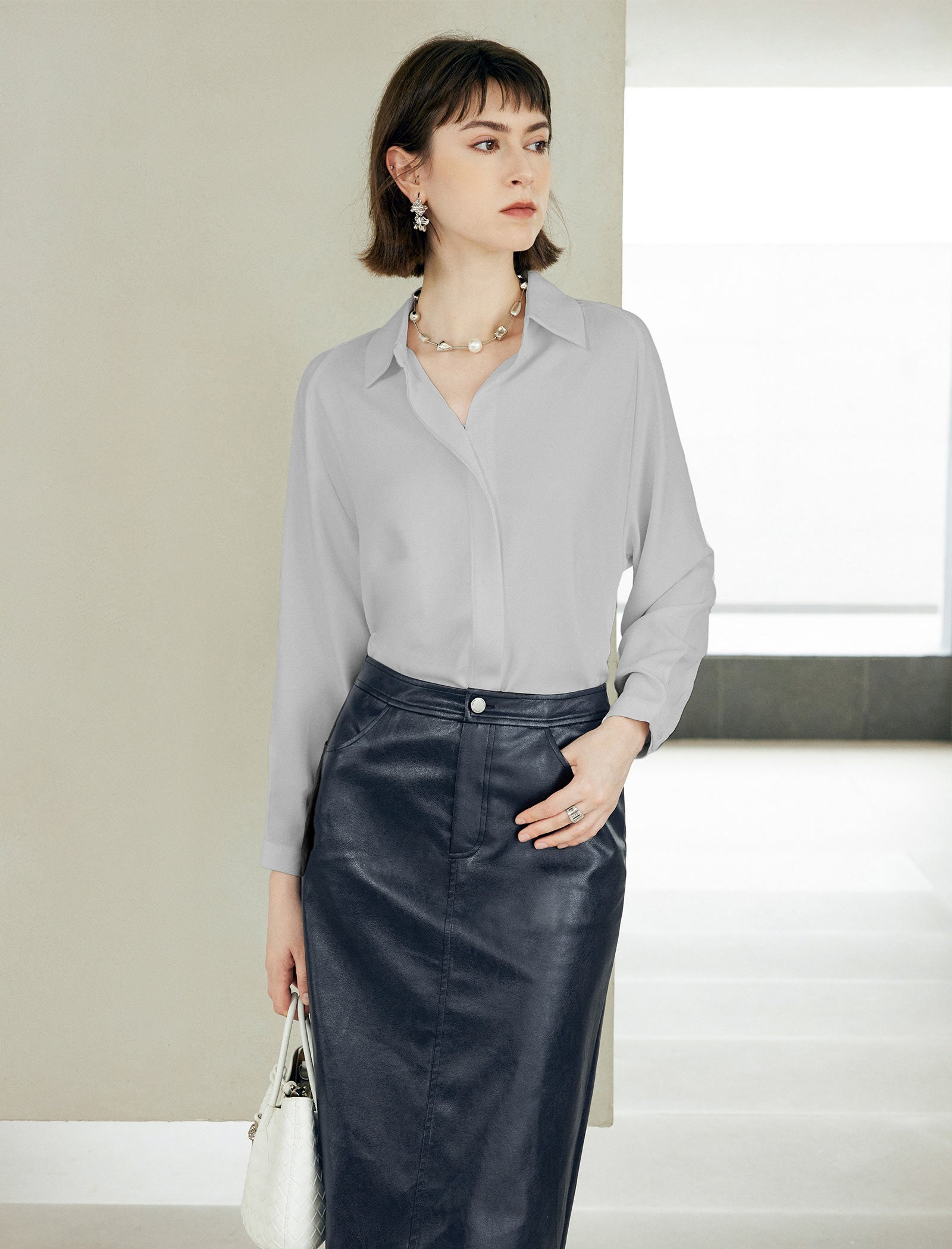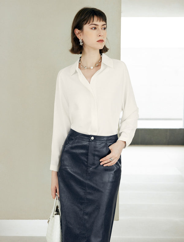 Mulberry Silk Hidden Button Placket Shirt