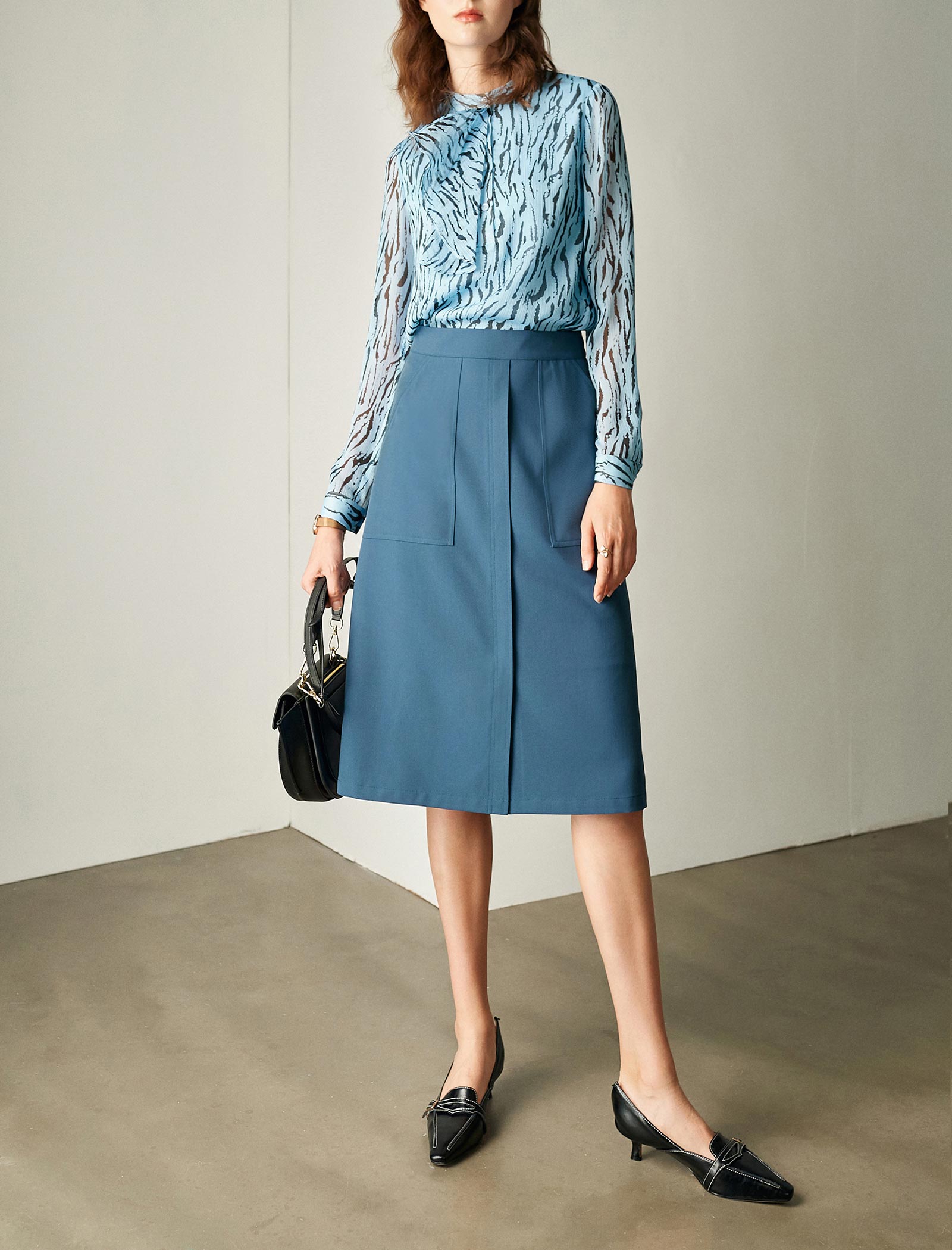 • High neckline and long sleeves for a polished look