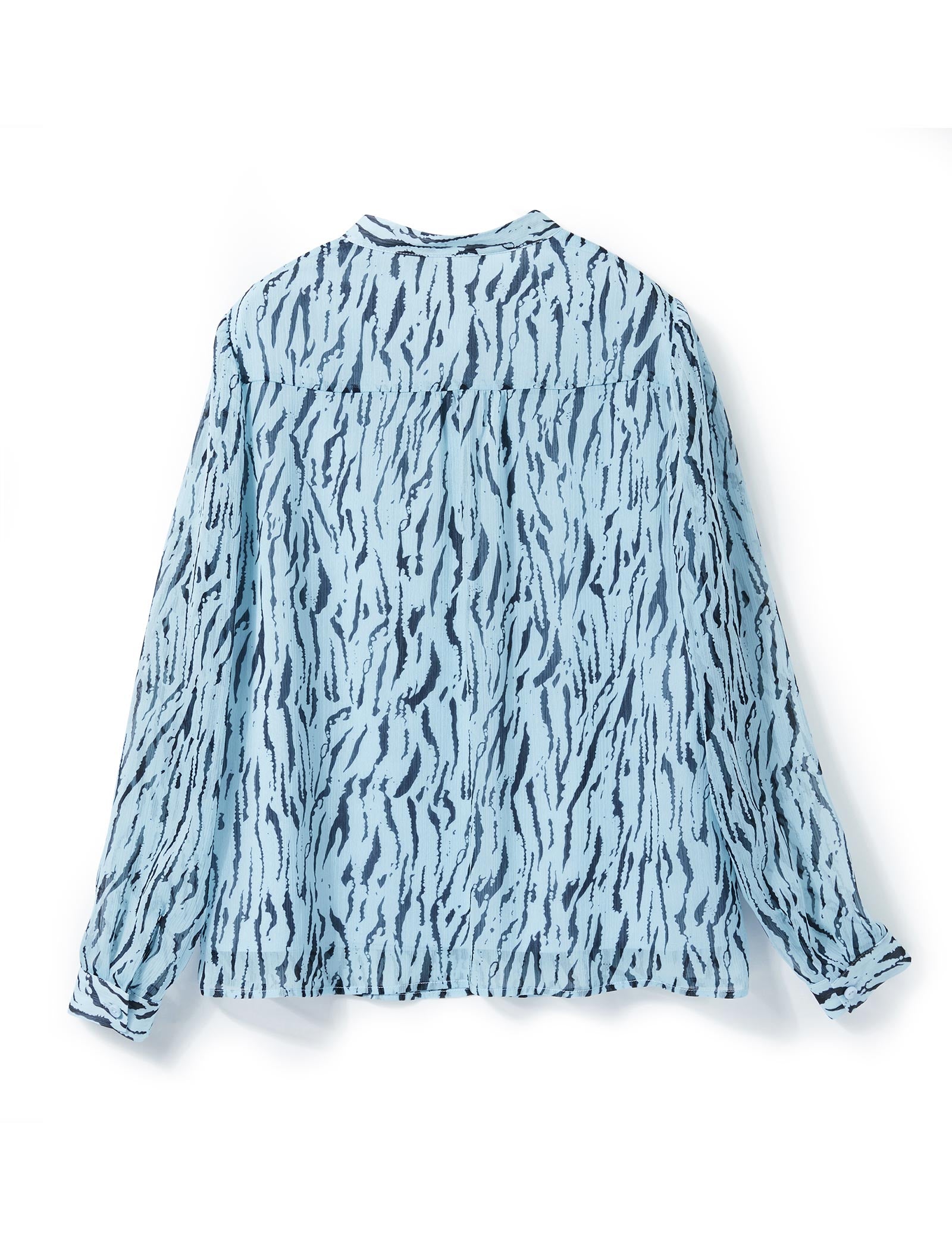 Ruffle Detail Zebra-Print Sheer Blouse