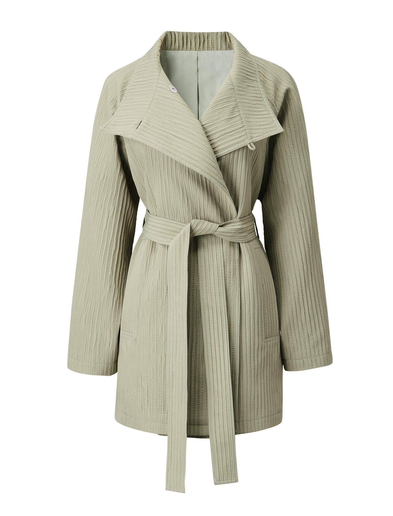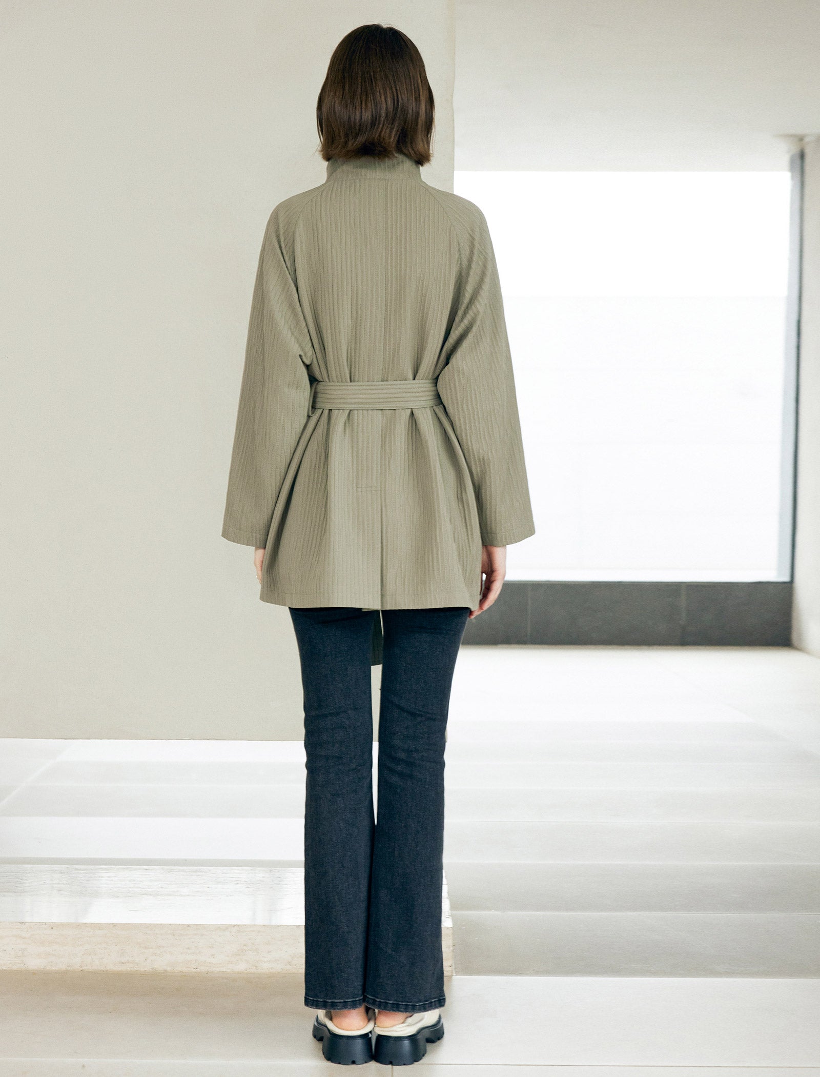 Textured Stand Collar Mid-Length Minimalist Trench Coat