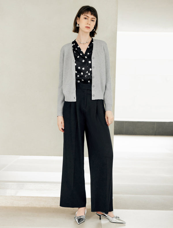 Purple Minimalist V-Neck Long-Sleeve Knit Cardigan