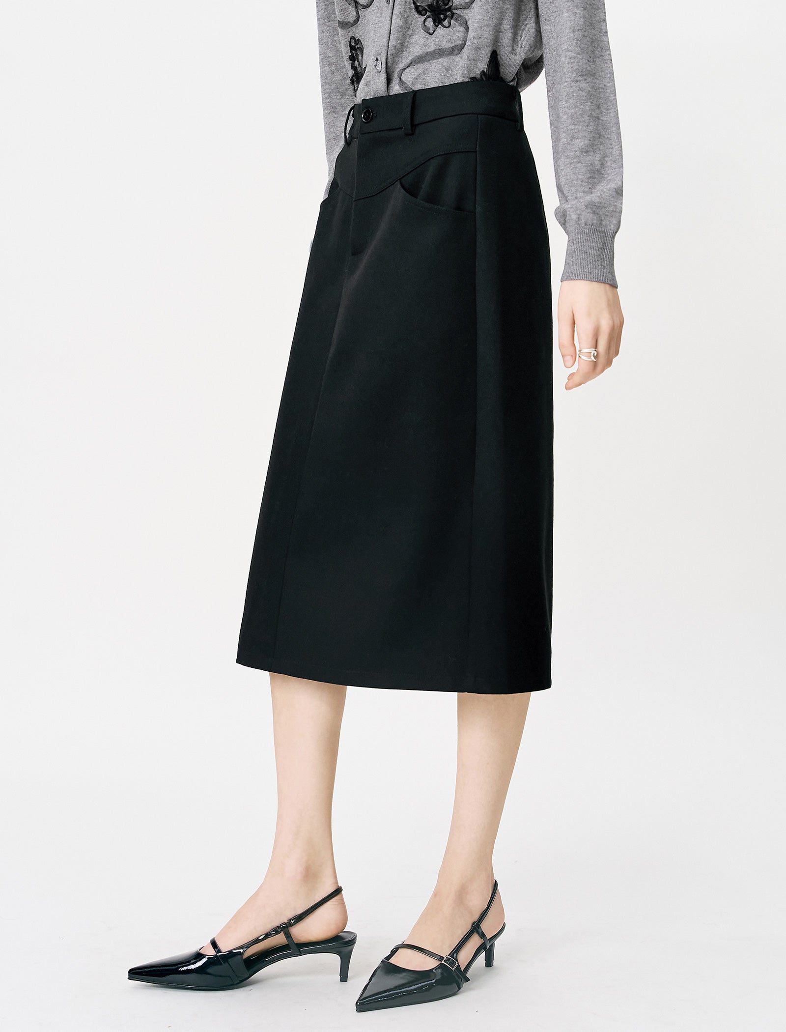 1. Flattering A-line silhouette with a clean, knee-length hem.