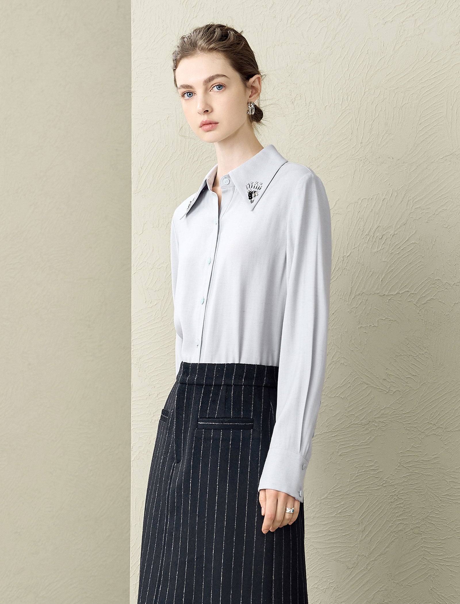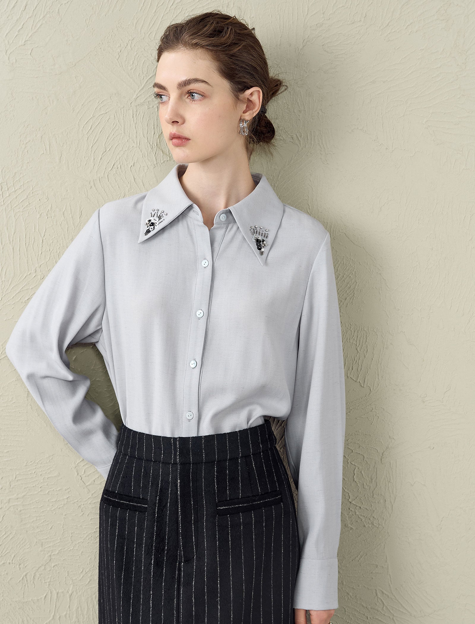 Embellished Collar Button-Down Shirt