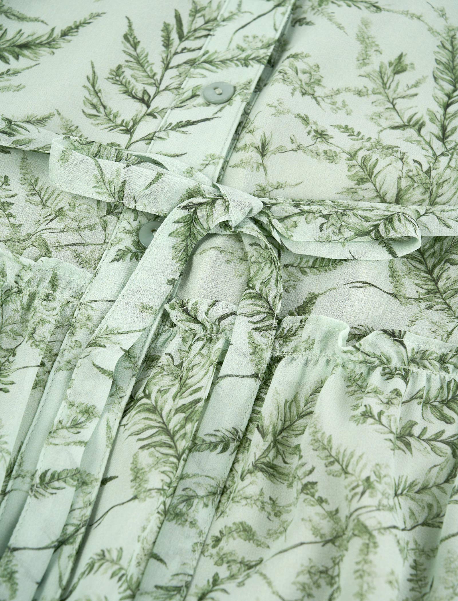 Plant Print Tiered Shirt Dress