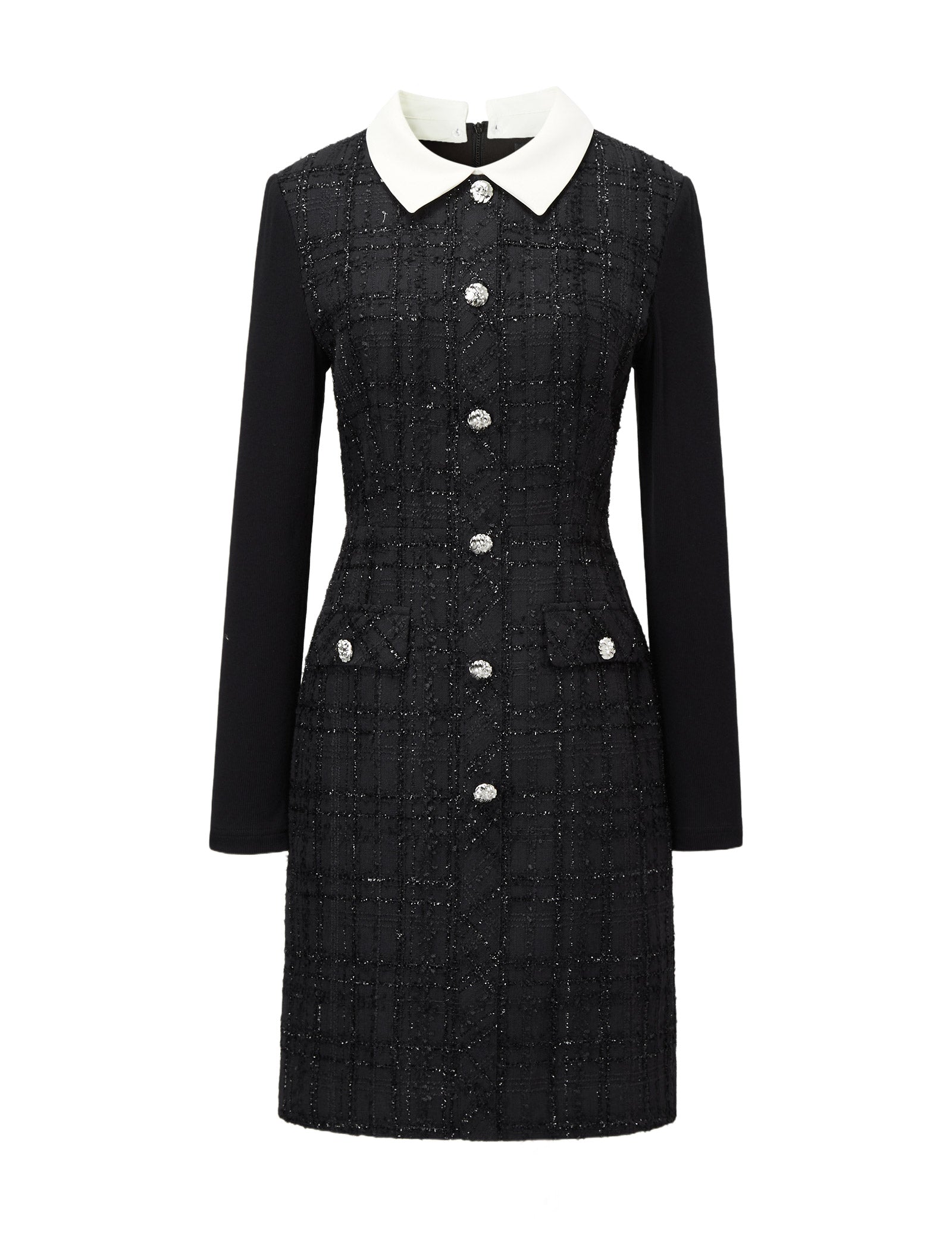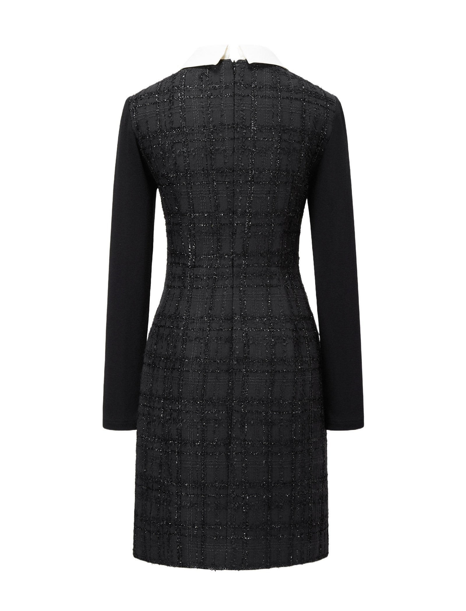 Doll Collar Waist-Defining Long-Sleeve Short Dress