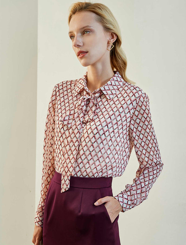 Geometric Tie-Neck Blouse