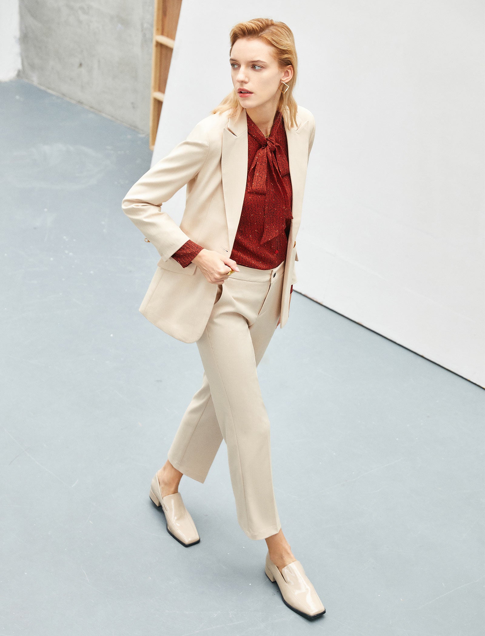 This rust red blouse adds subtle glamour to any outfit: its ditsy print is flecked with fine glitter that catches light, while the self-tie bow neck brings a polished, feminine touch. The lightweight, flowy fabric and long sleeves keep it comfortable—pair with beige trousers for the office, or layer under a blazer for meetings. The relaxed fit works for casual or dressy occasions, and the subtle sparkle elevates your look without feeling over-the-top.
