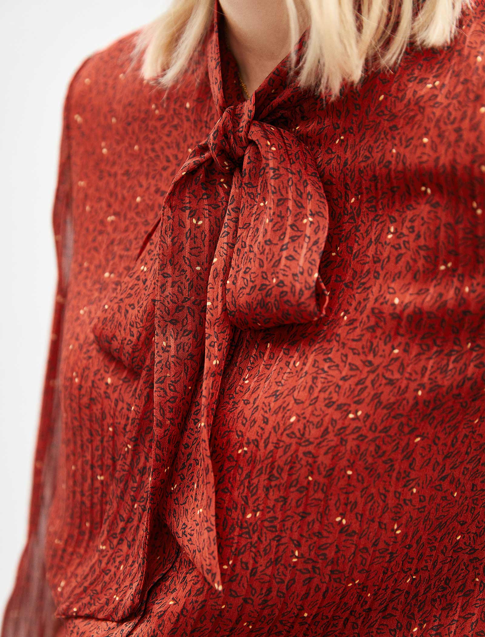Rust Red Ditsy Print Bow Neck Blouse