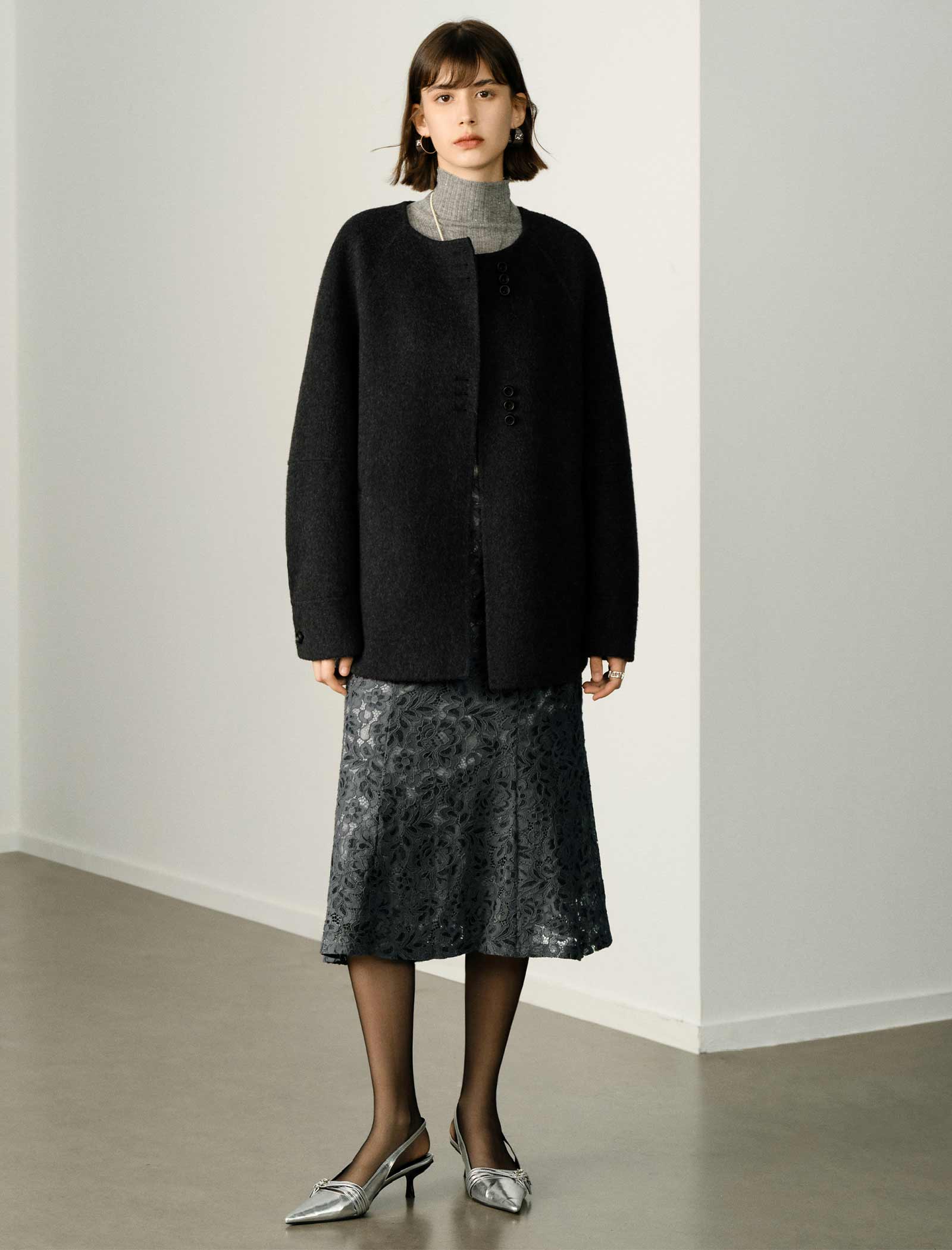 Floral Lace Flared Hem Midi Skirt