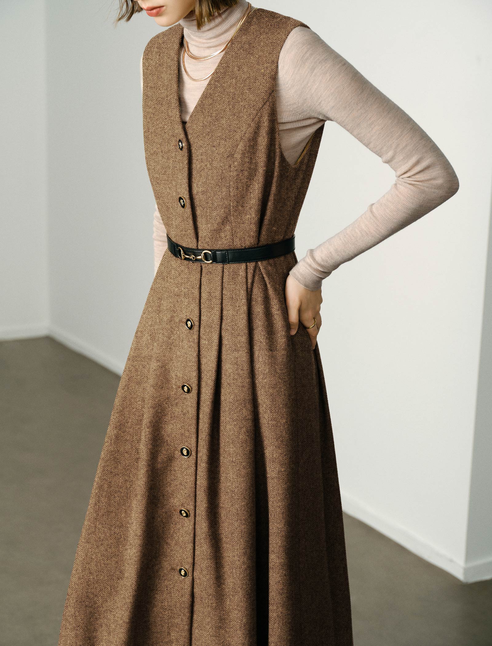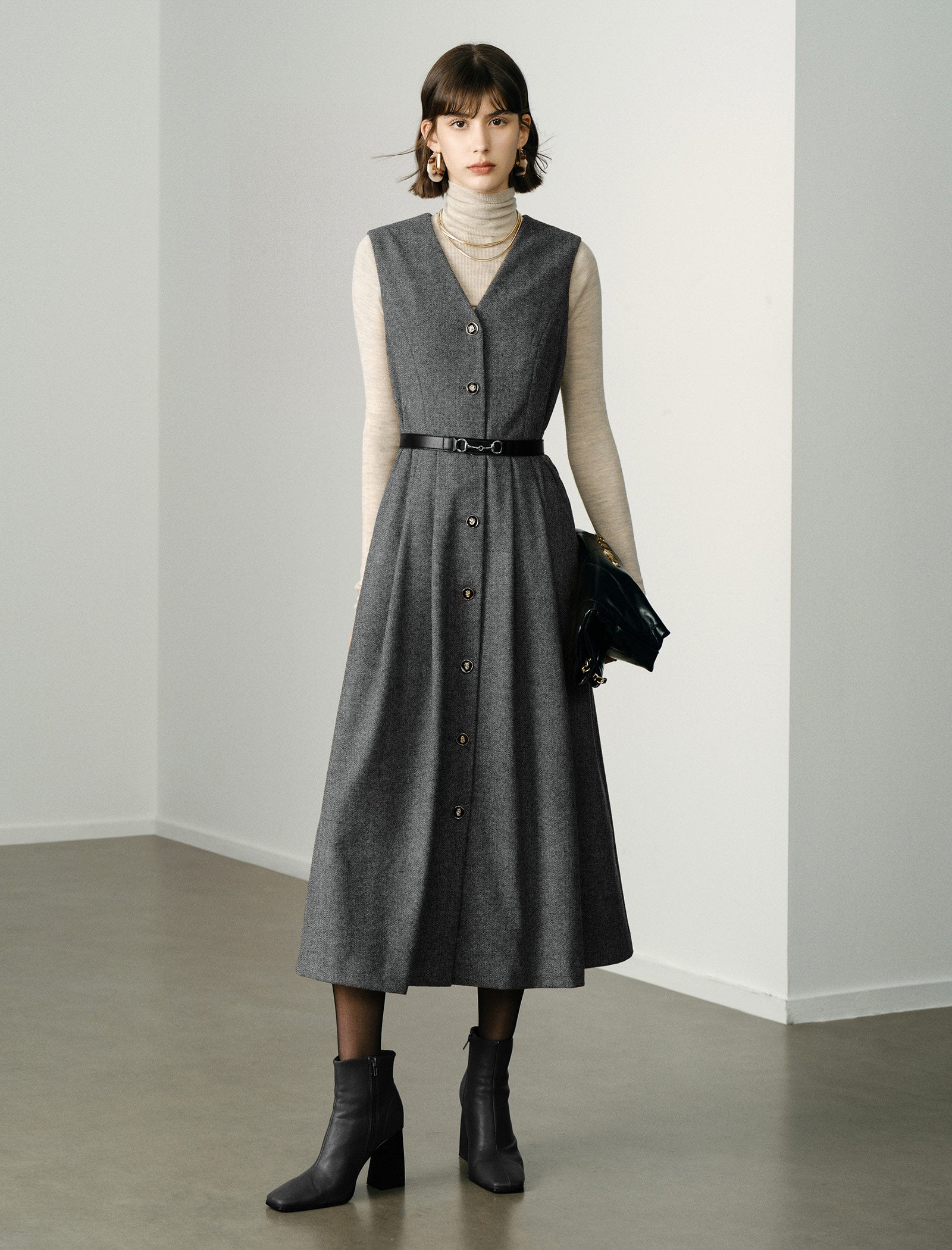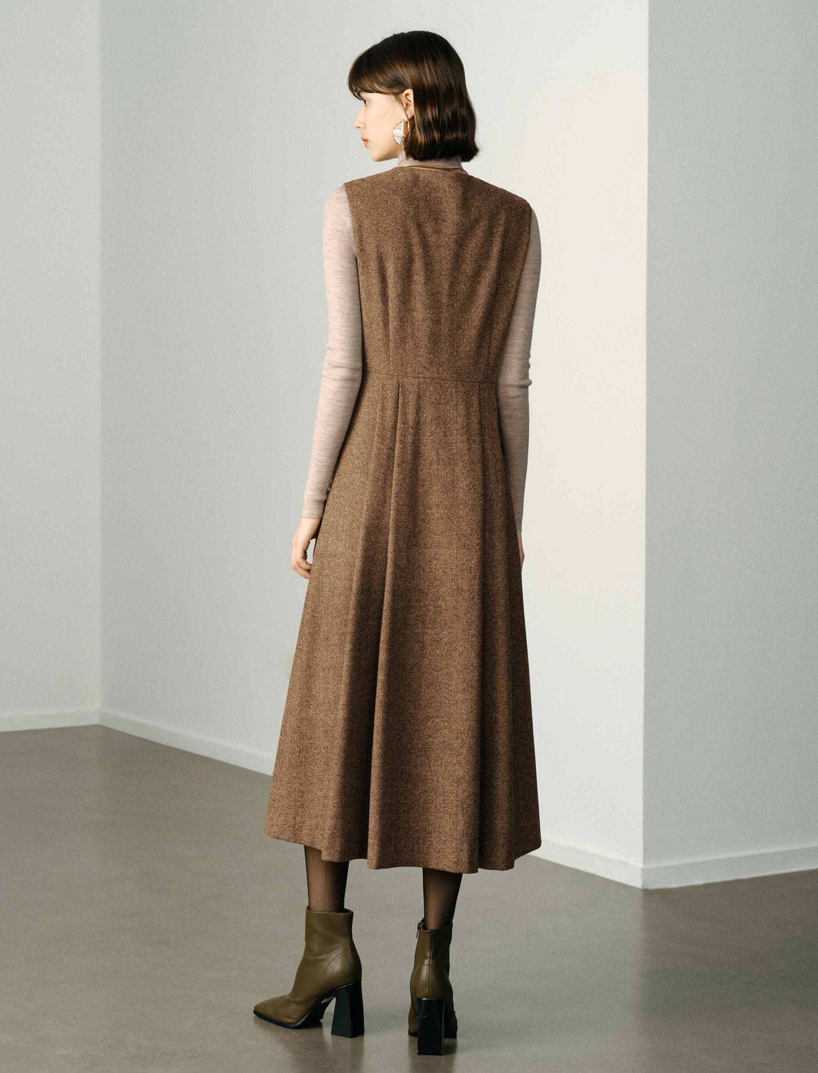 Wool V-Neck Minimalist Sleeveless Midi Dress