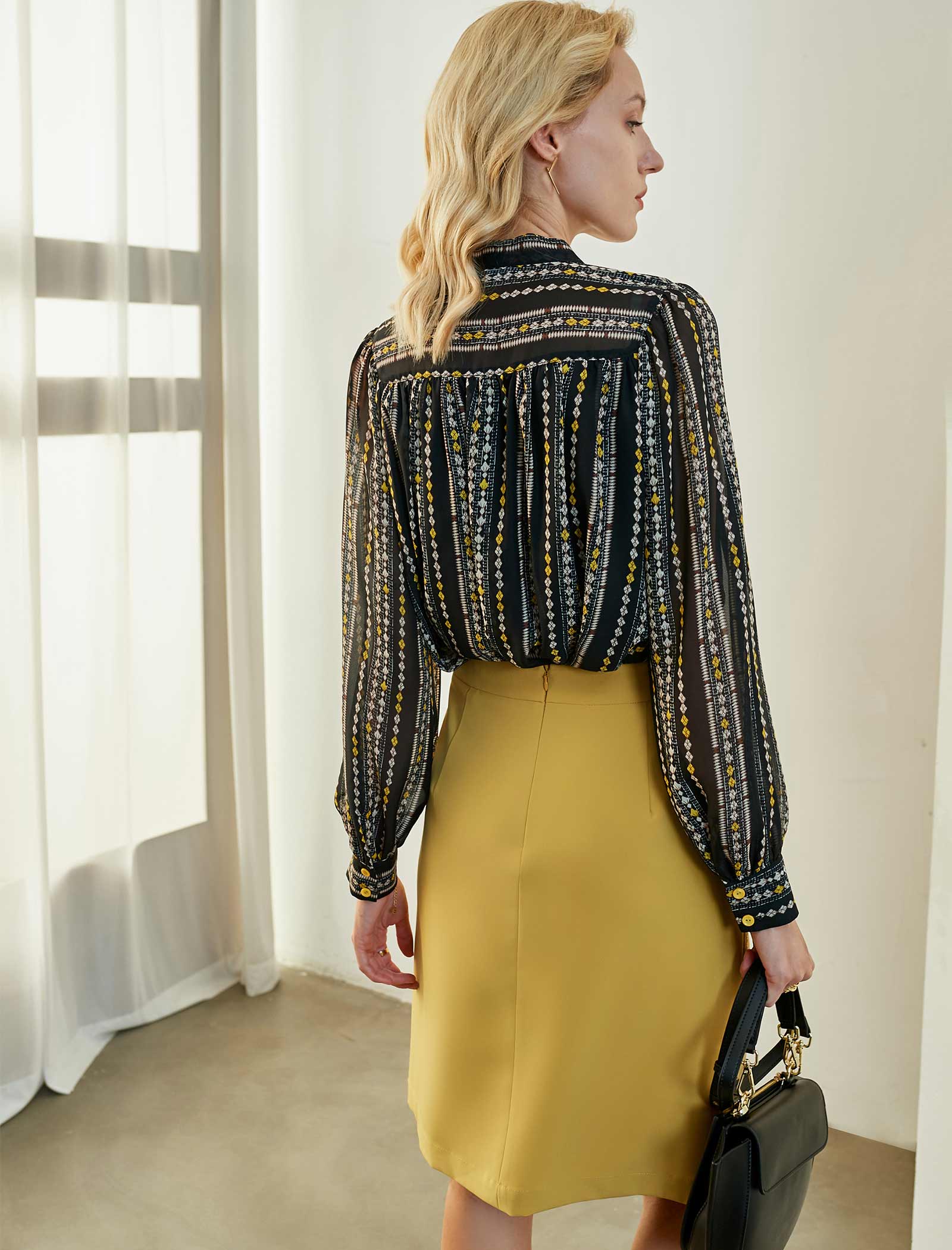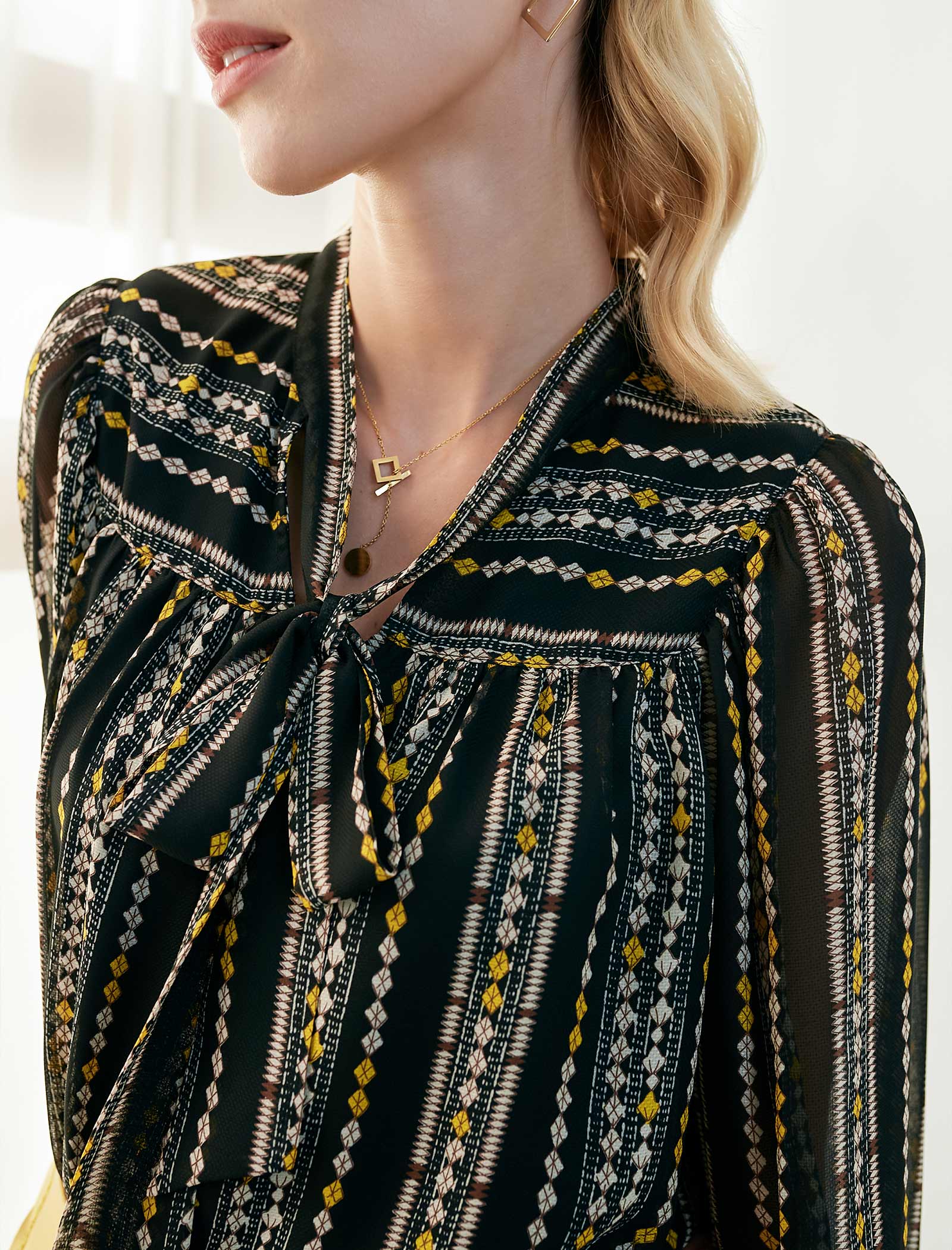 Print Tie-Neck Blouse