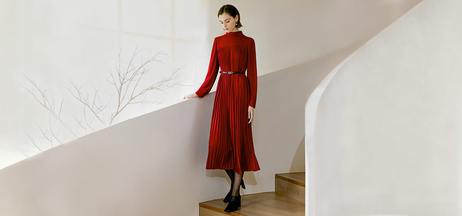 Waist-Defining Slim Fit Long-Sleeve Midi Dress