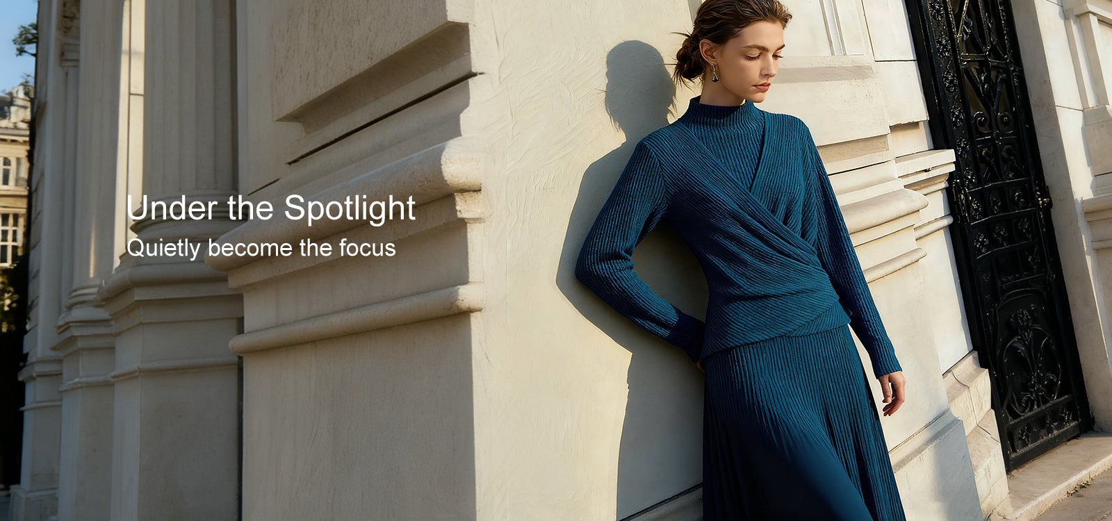 Wool Blend Wrap-Front Pleated Knit Midi Dress