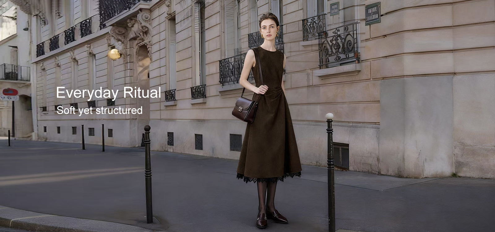 Brown Vintage Round Neck Sleeveless Midi Dress