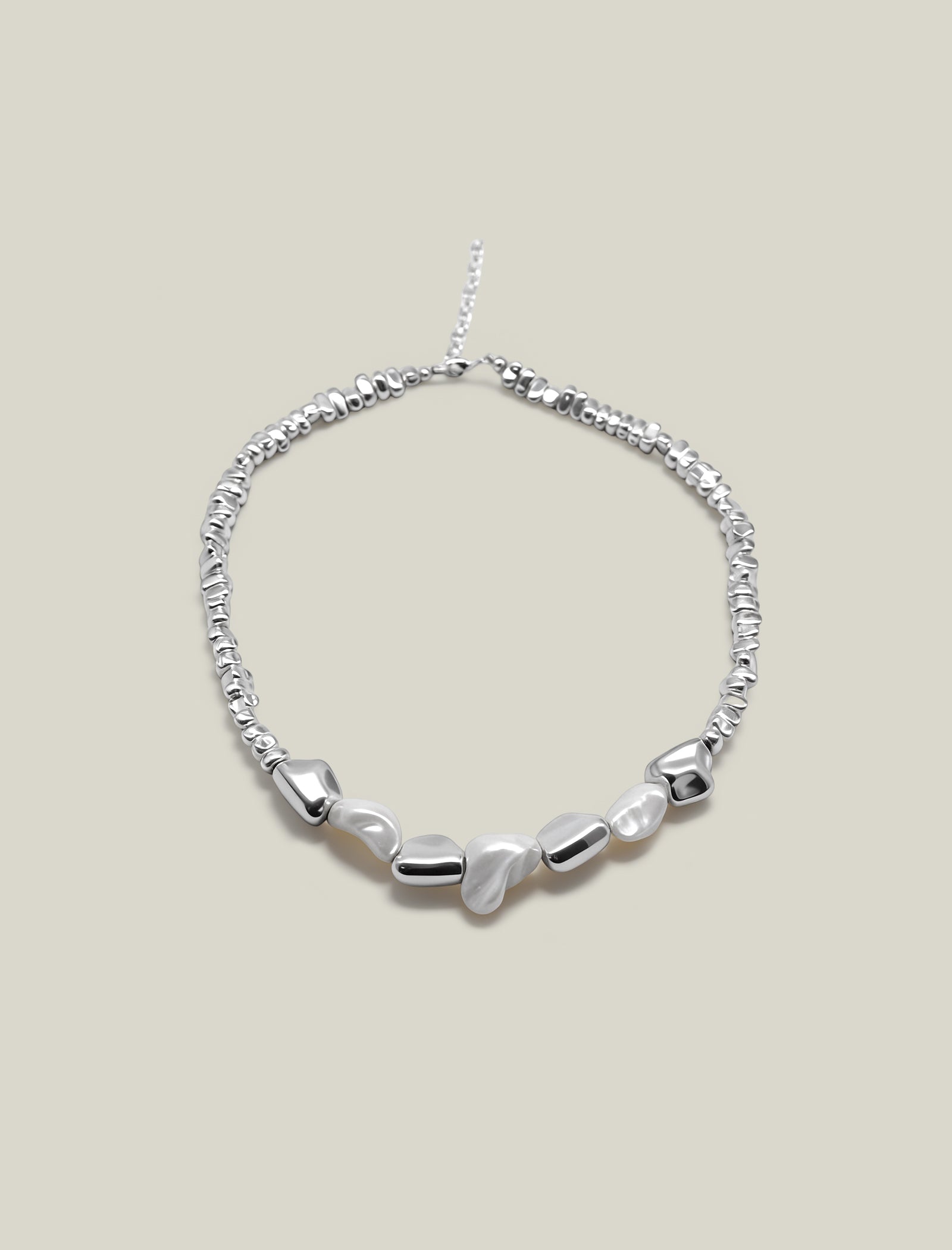 This edgy-chic choker blends irregular baroque pearls with textured, hammered silver-tone metal beads for a cool, modern look. The short, statement-making length pairs perfectly with low-neck tops, blazers, or dresses—adding instant edge to everyday outfits or night-out looks!