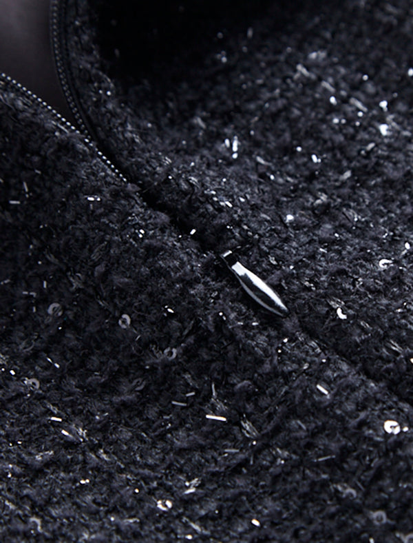 1. Classic tweed fabric for a rich, sophisticated texture.