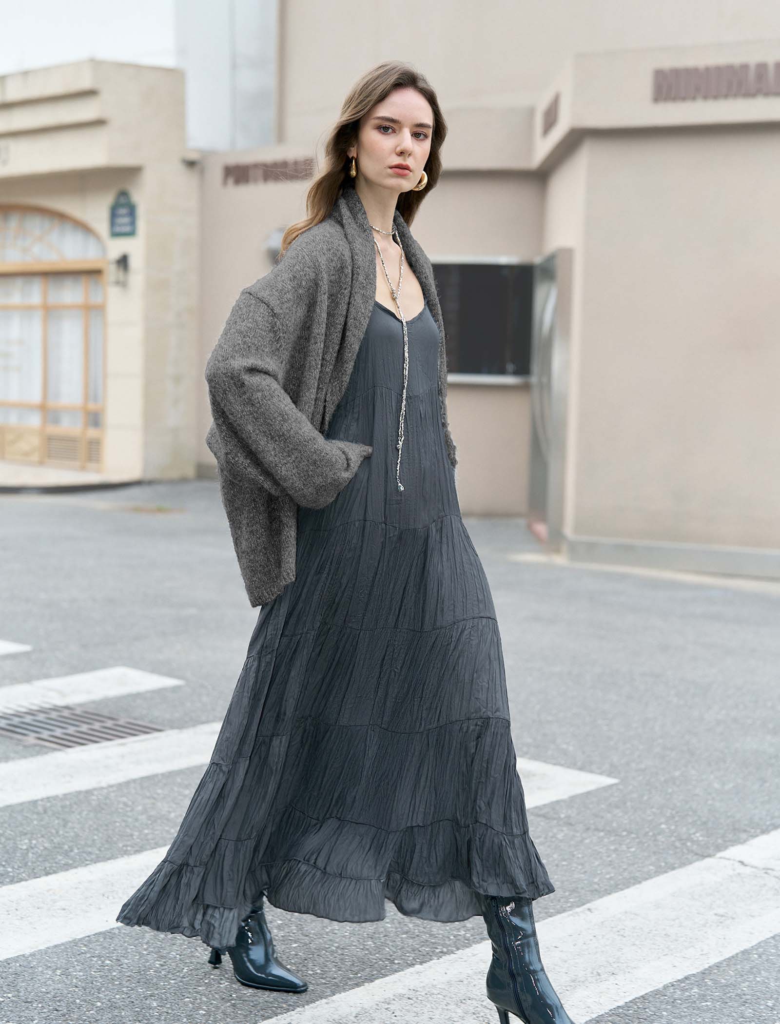 Charcoal Crinkled Sleeveless Maxi Slip Dress