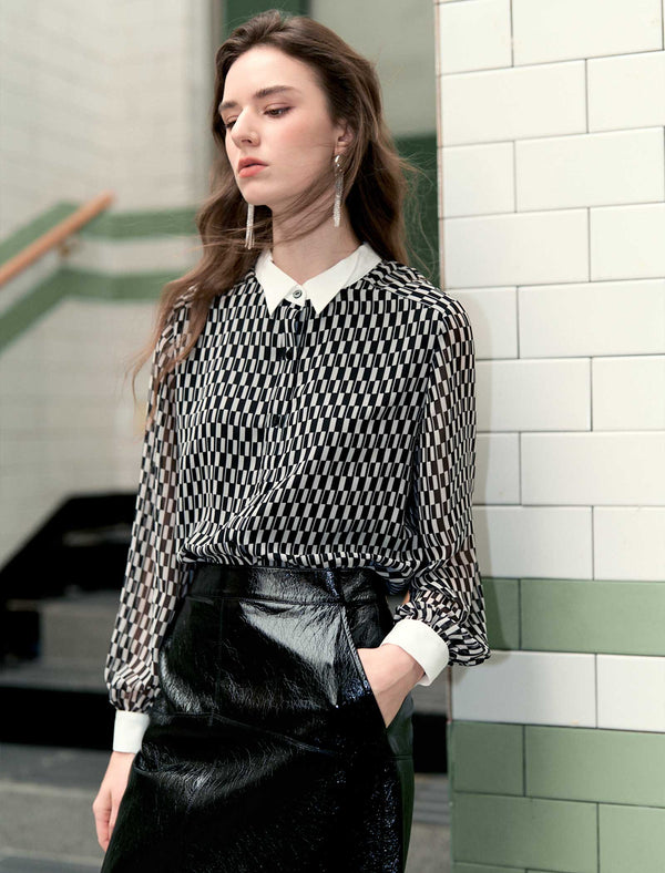 Checkered Button Up Blouse