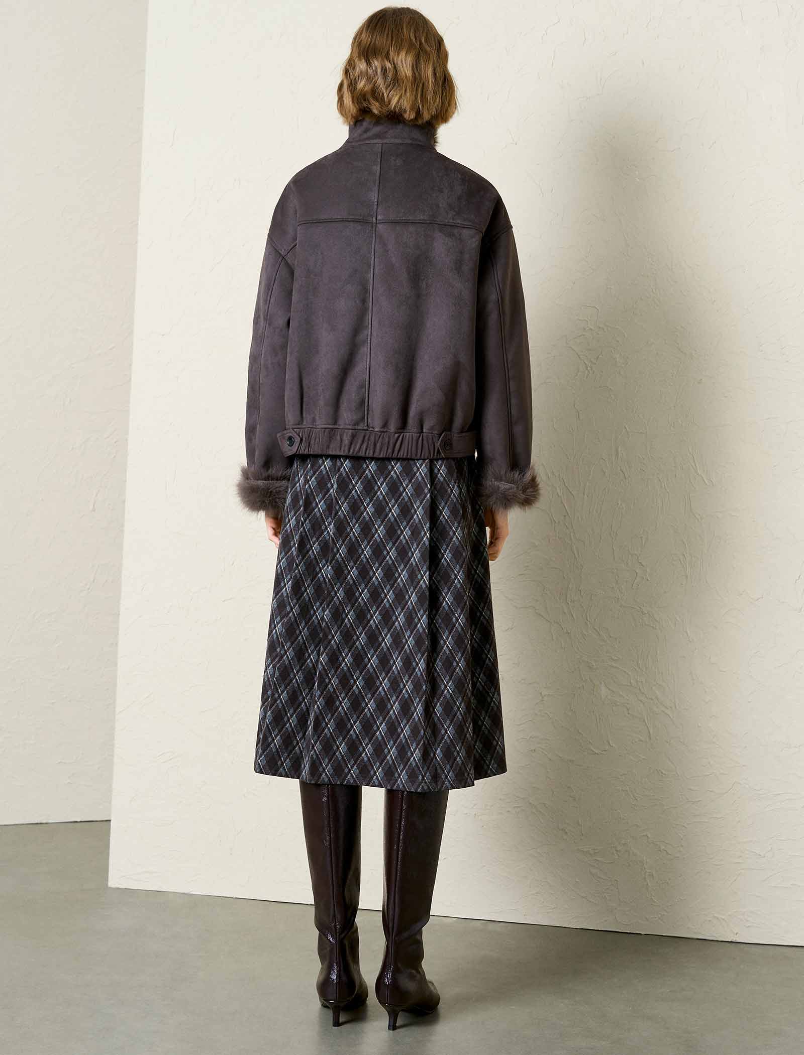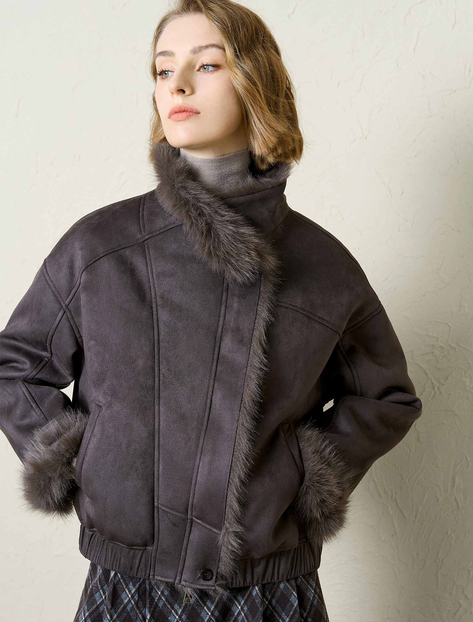 Faux Suede Fur Trim Cropped Jacket