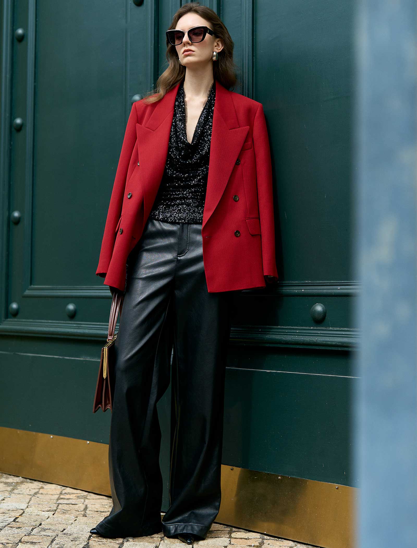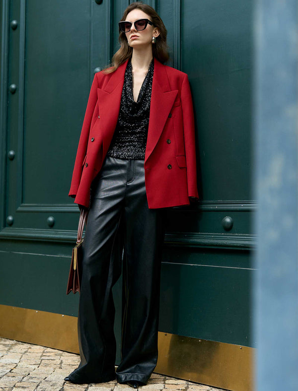 Make a statement in this halter cowl neck open-back sequin top. It features a glamorous sequin design, a flattering cowl neck, and an alluring open-back cut. Perfect for parties or date nights, pair it with leather pants and bold accessories to steal the spotlight.