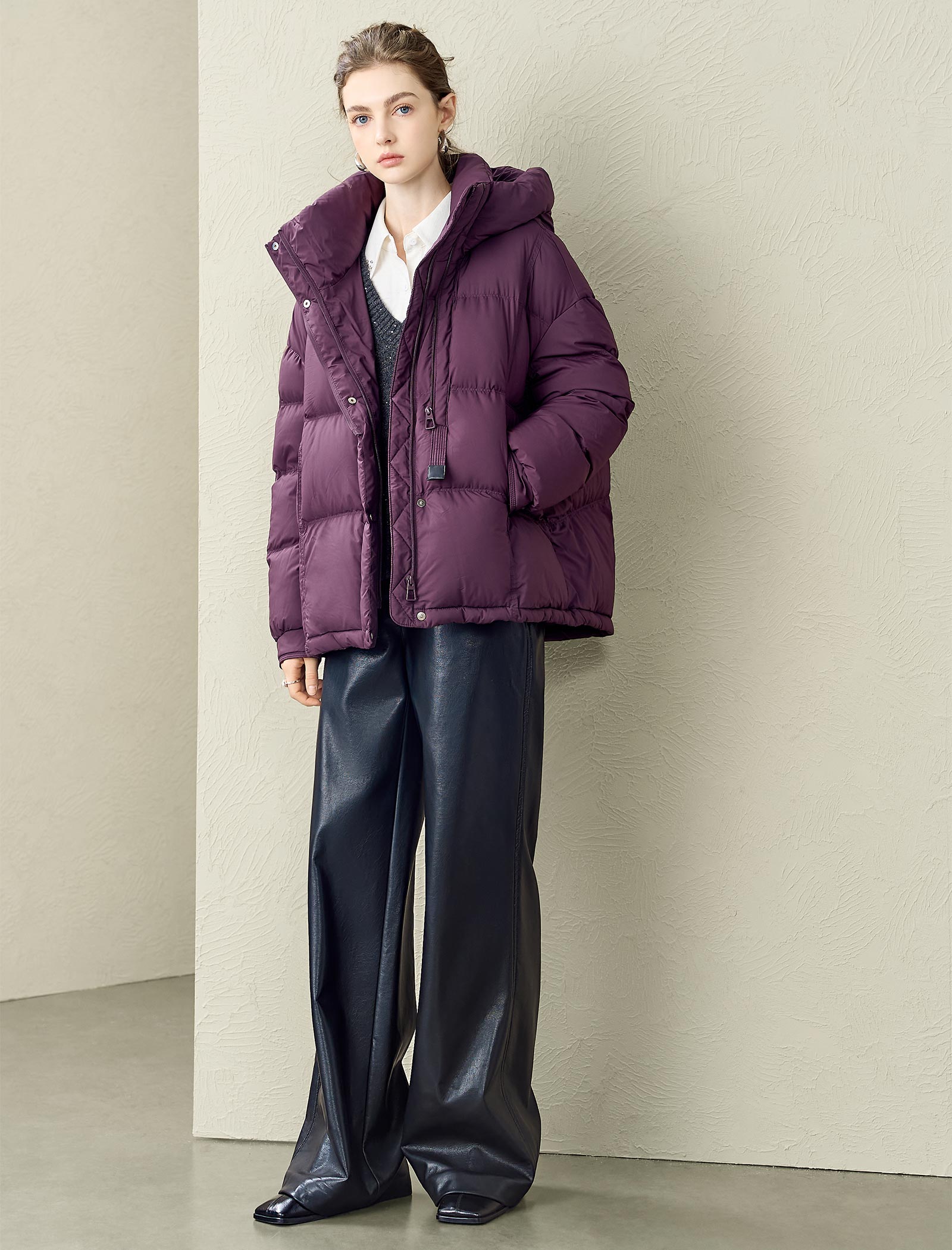 High Collar Hooded Down Jacket