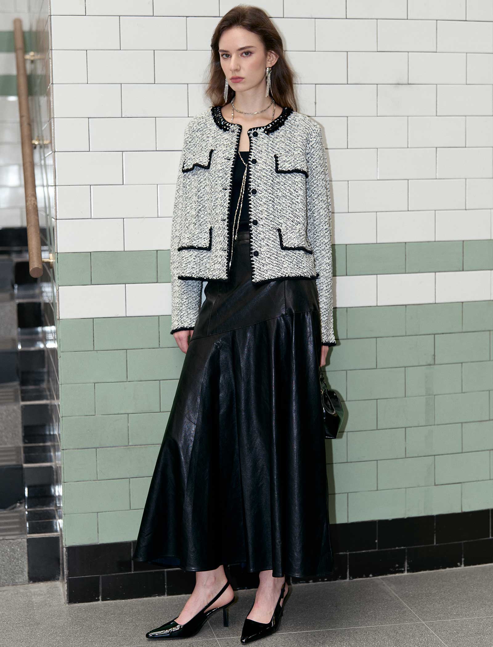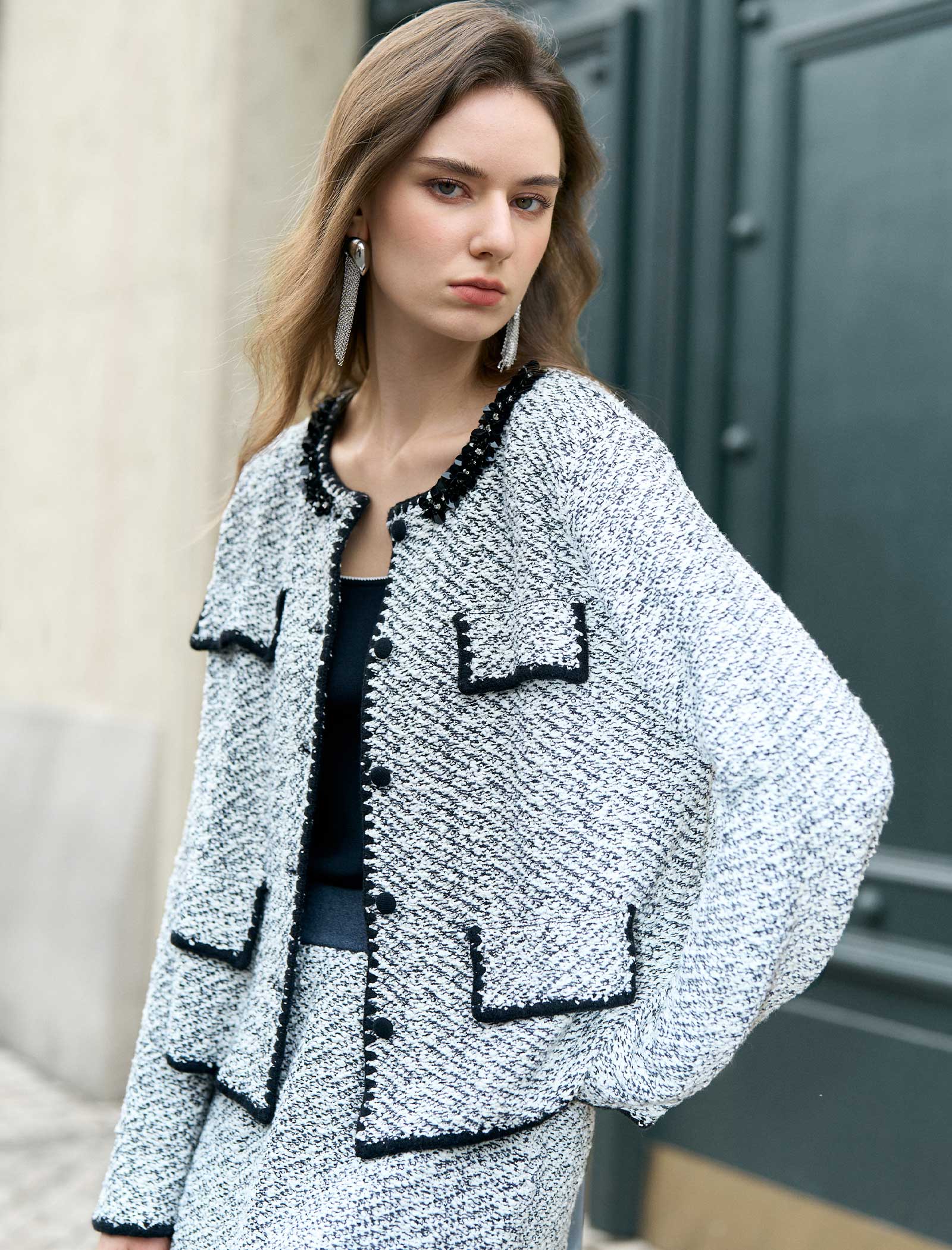 Step into timeless charm with this light gray tweed wool-blend jacket: its textured fabric feels soft yet structured, offering warmth and polish for cool days. The open-front design and relaxed fit make it easy to layer over dresses, tops, or blouses—pair it with jeans for a casual-chic look, skirts for work, or leather bottoms for an edgy twist. Perfect for brunch, work meetings, or date nights, this versatile piece is a sophisticated staple for any wardrobe!