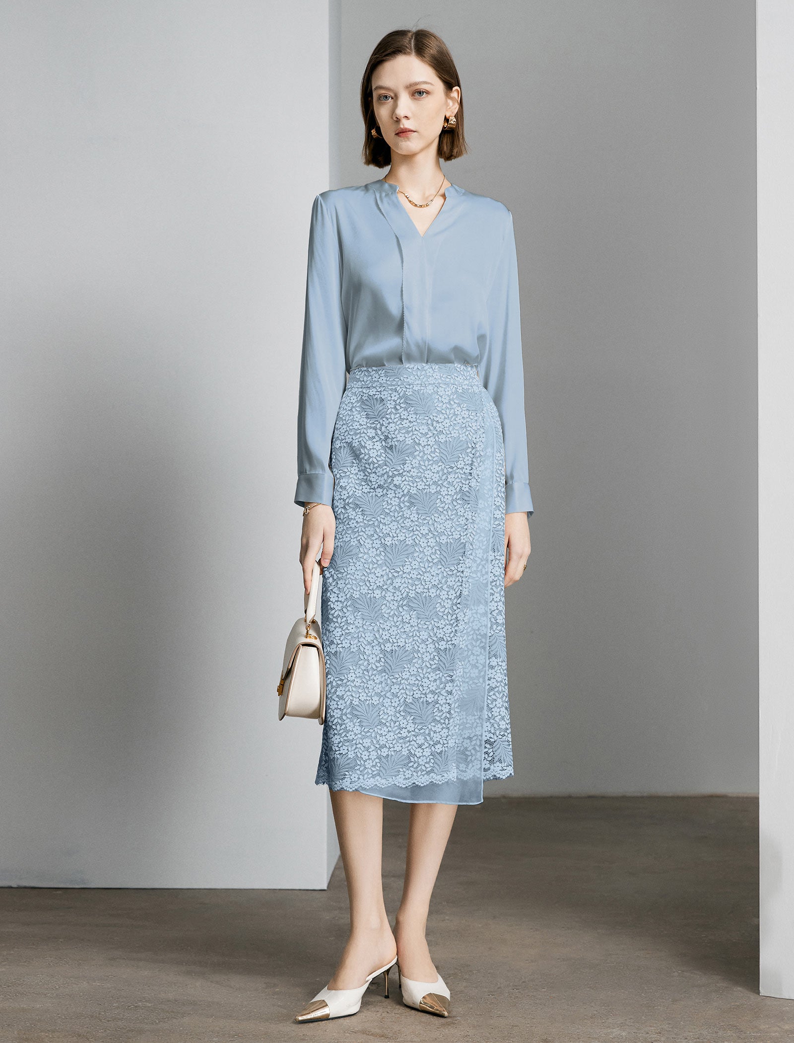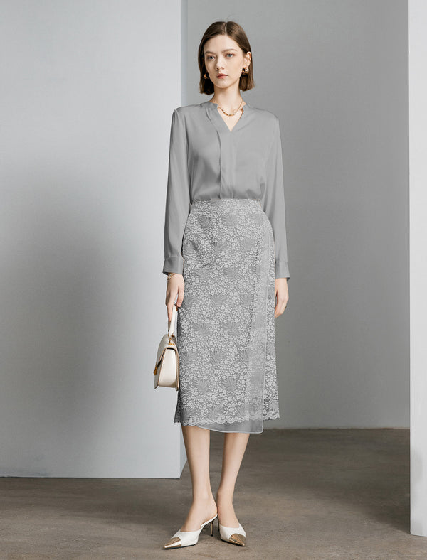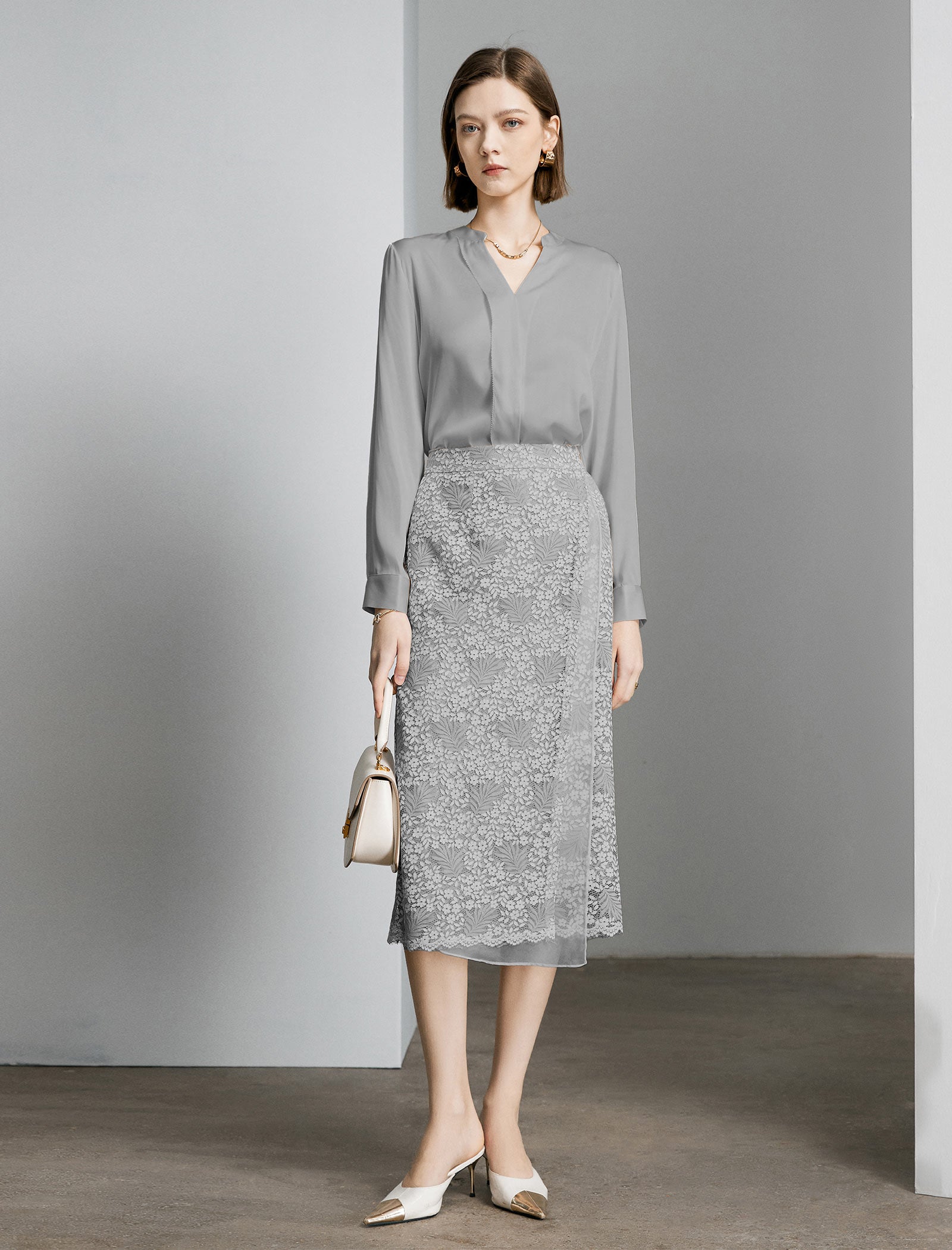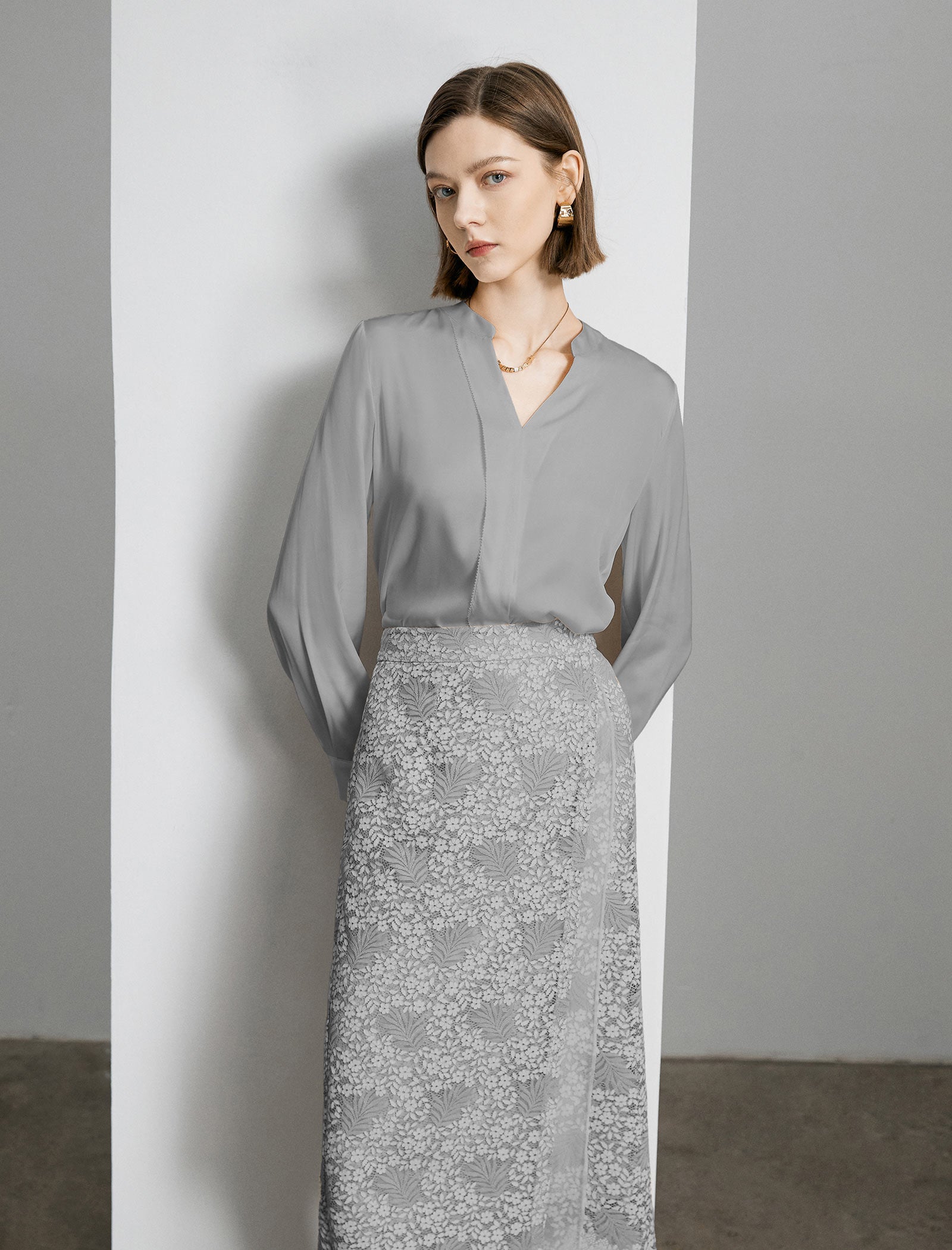 Mulberry Silk V-Neck Long Sleeve Blouse