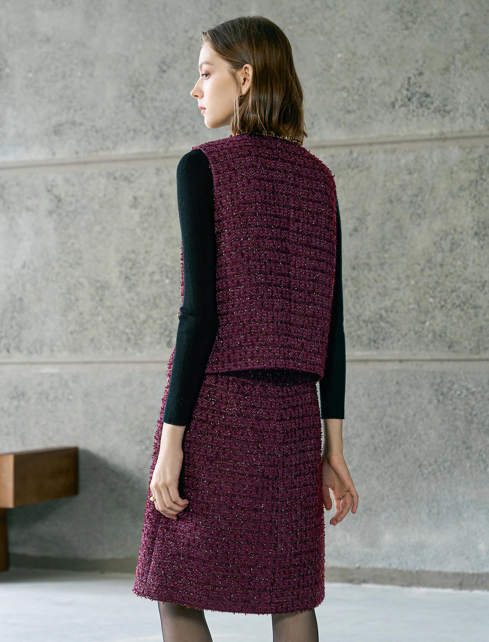 Red Tweed Vintage V-Neck Vest Coat