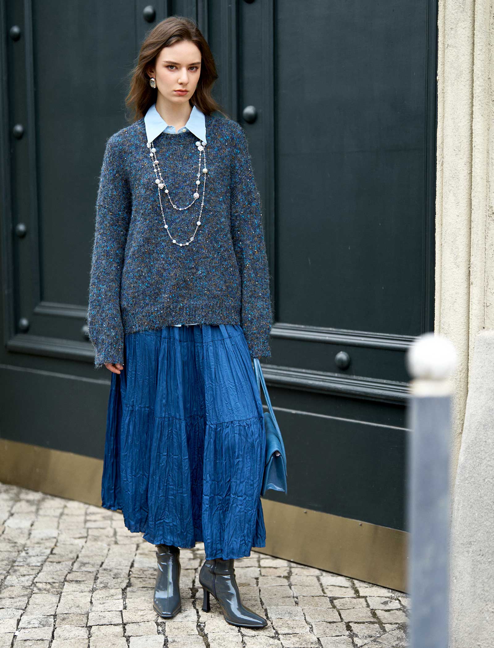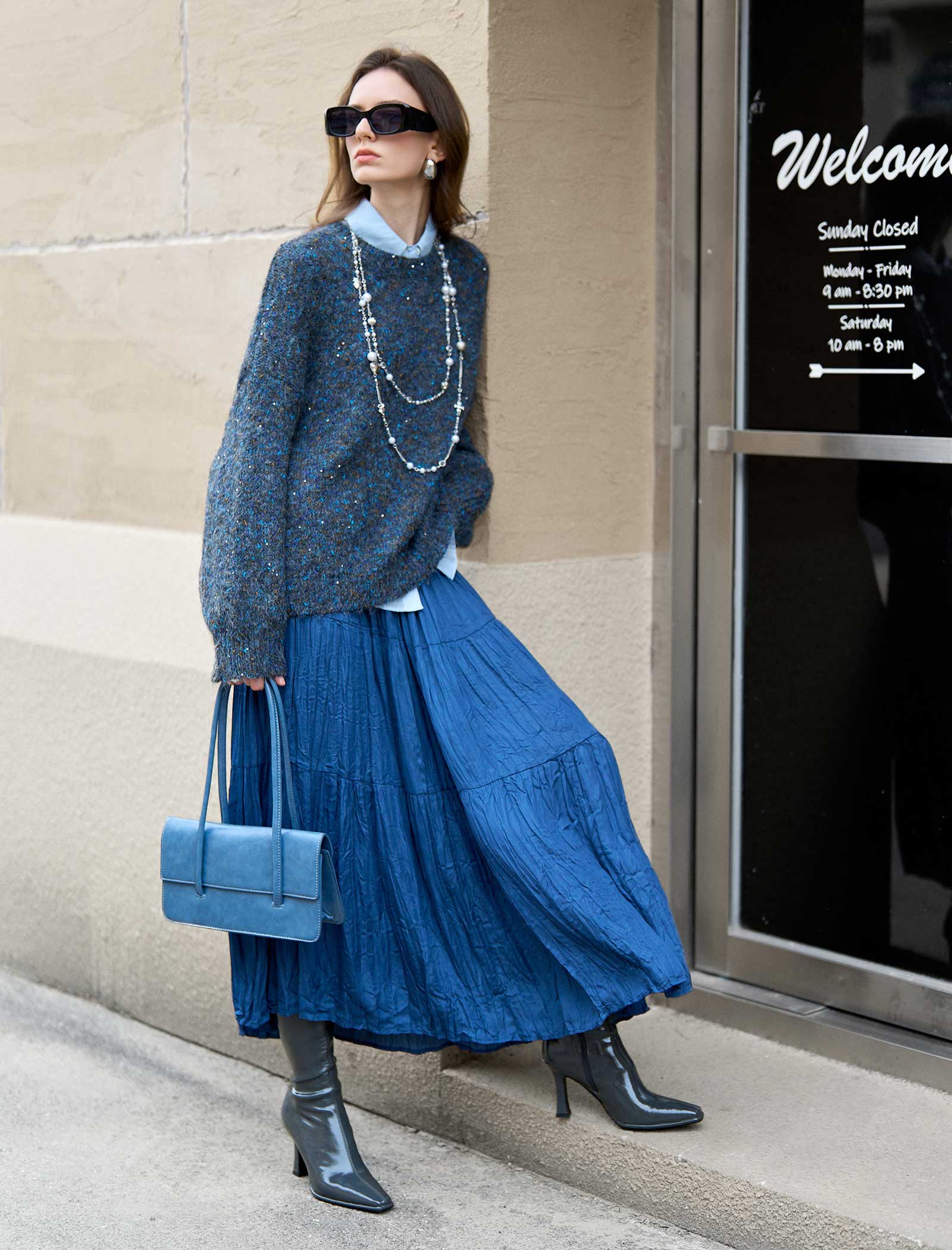 Add effortless drama to your wardrobe with this royal blue crinkled maxi skirt! The lightweight, textured fabric flows beautifully, while the tiered pleats create a playful, billowy silhouette.Perfect for pairing with sweaters, blouses, or jackets—wear it for brunch, errands, or casual evenings out. A bold, versatile staple for elevating any outfit!