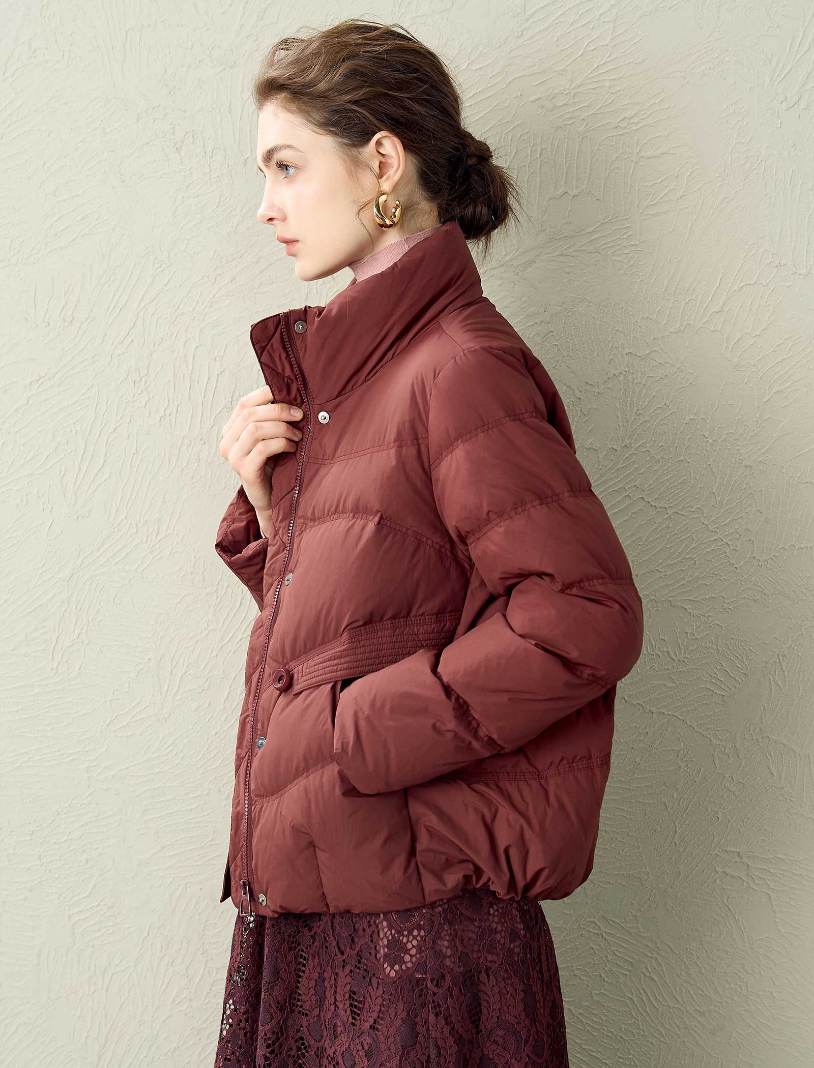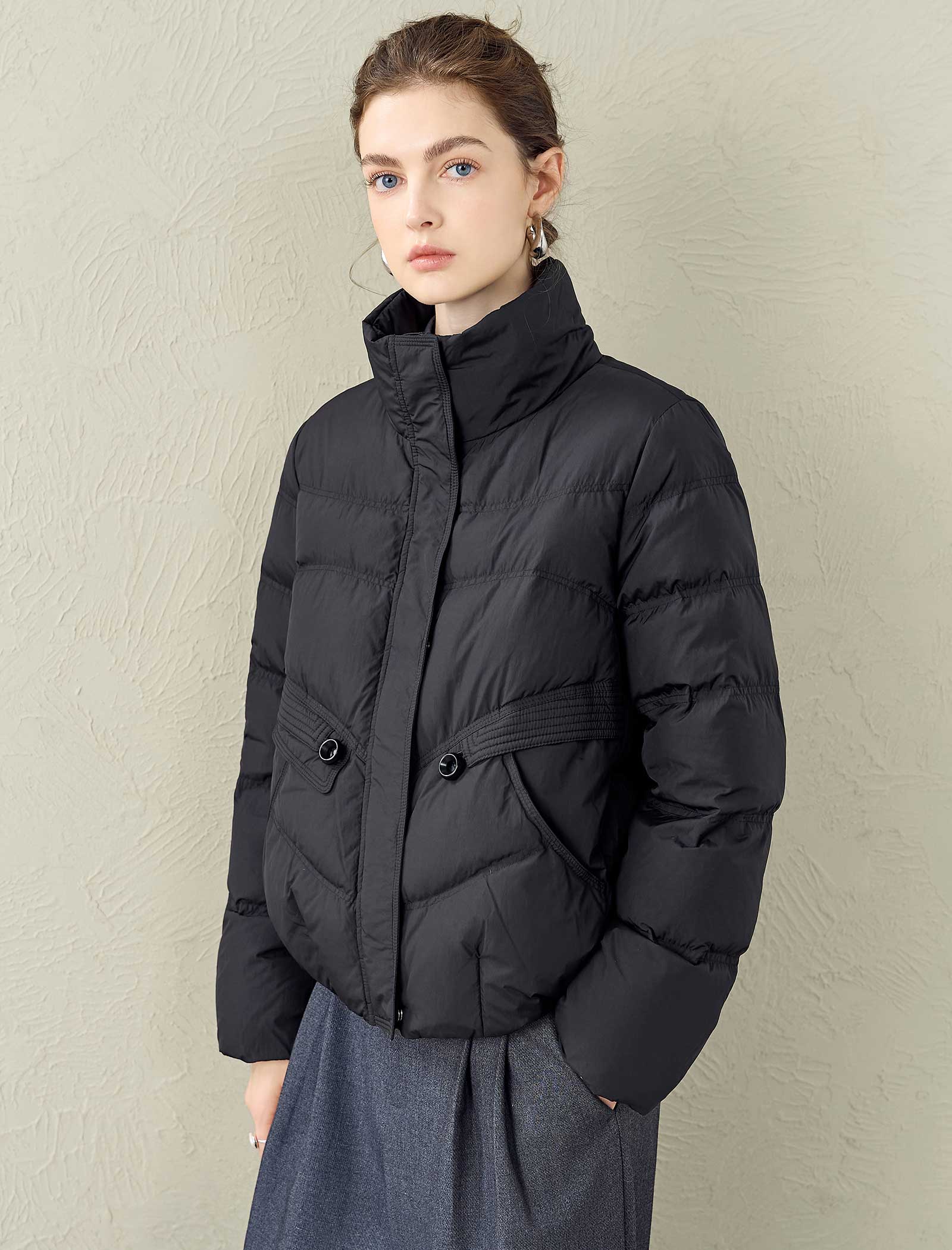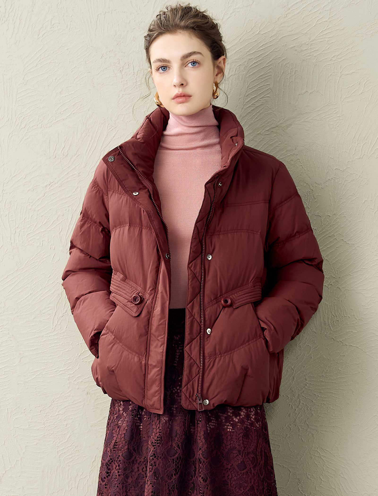 Filled with 90% premium white duck down, this puffer jacket delivers superior warmth without bulk. The fabric is smooth, durable, and designed for lasting comfort. It features a stand collar to lock in heat, functional pockets for essentials, and a tailored fit that flatters your silhouette. Perfect for layering over sweaters or dresses, it’s a stylish choice for staying cozy on cool-weather days.