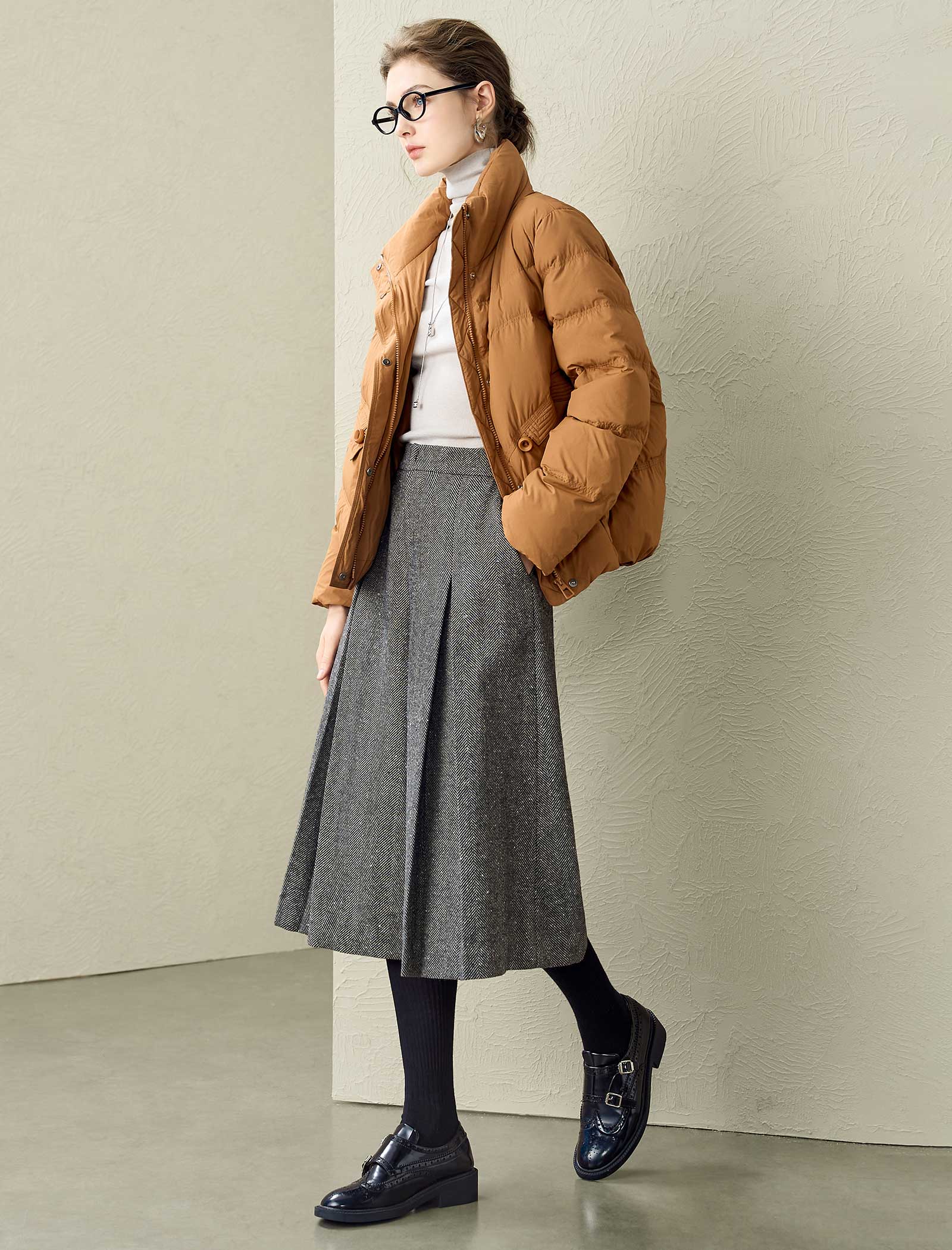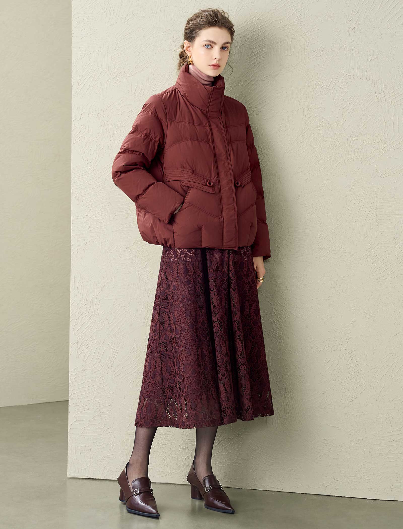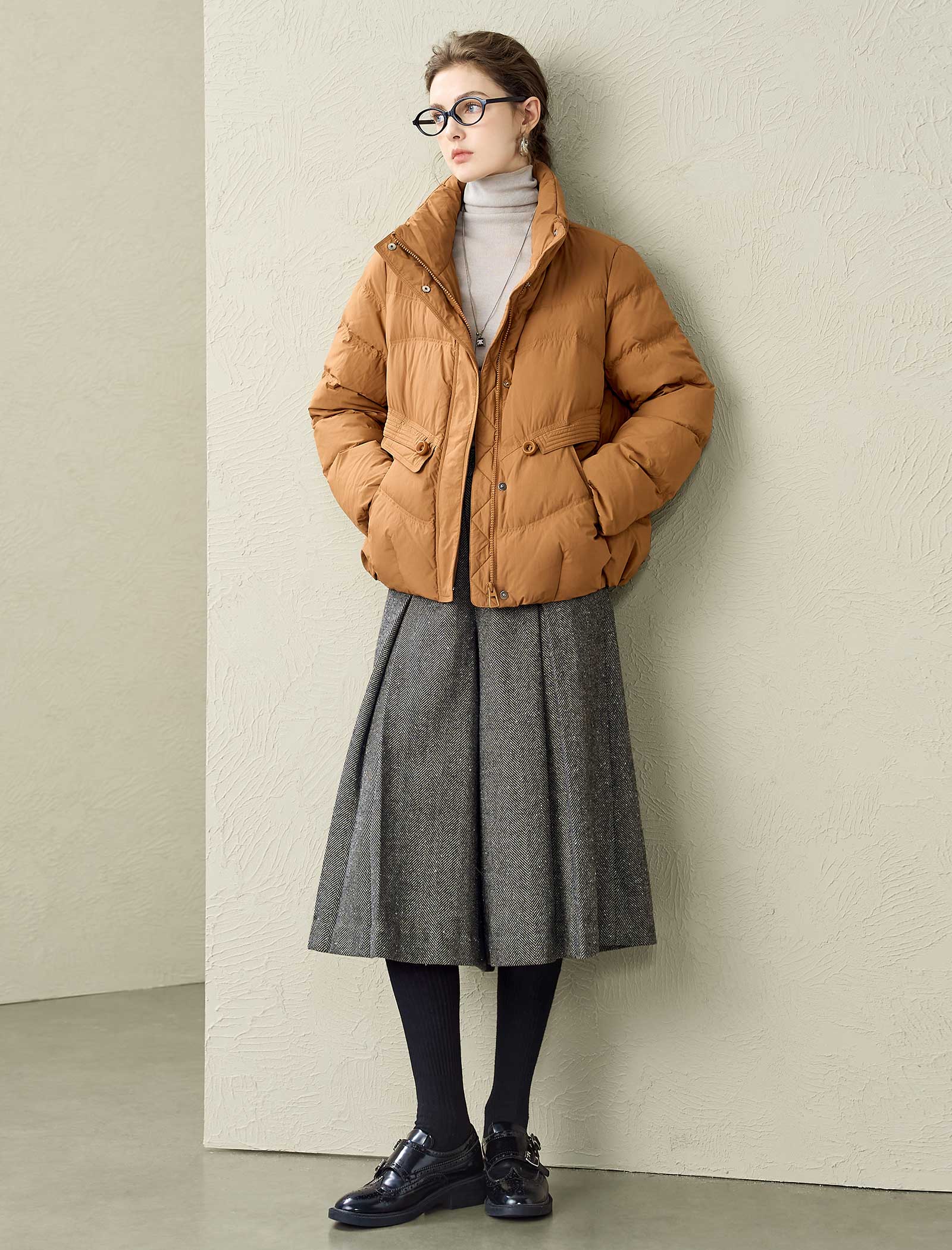 Filled with 90% premium white duck down, this puffer jacket delivers superior warmth without bulk. The fabric is smooth, durable, and designed for lasting comfort. It features a stand collar to lock in heat, functional pockets for essentials, and a tailored fit that flatters your silhouette. Perfect for layering over sweaters or dresses, it’s a stylish choice for staying cozy on cool-weather days.