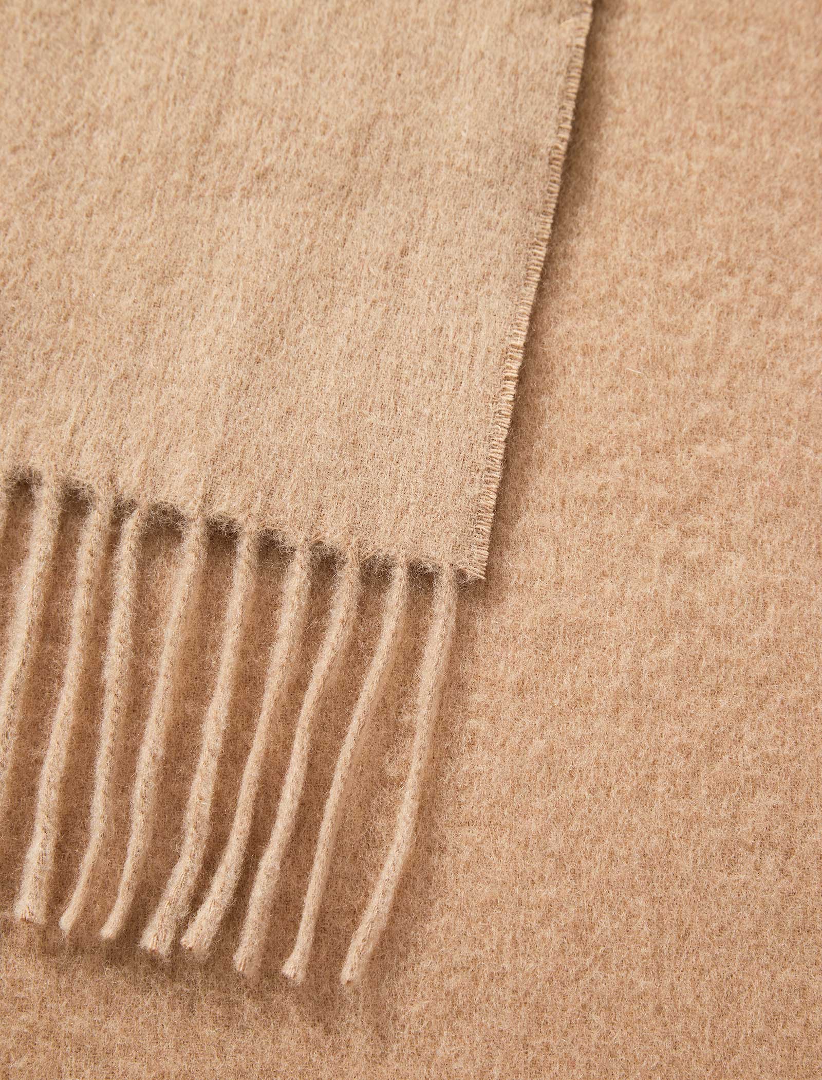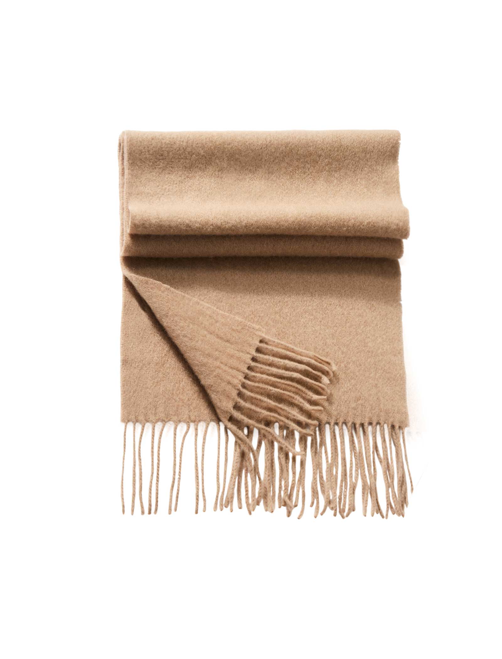 Stay cozy and stylish with this beige wool-cashmere blend scarf. It’s soft, warm, and features fringed ends. Perfect for adding a chic touch to any outfit on cool-weather days.