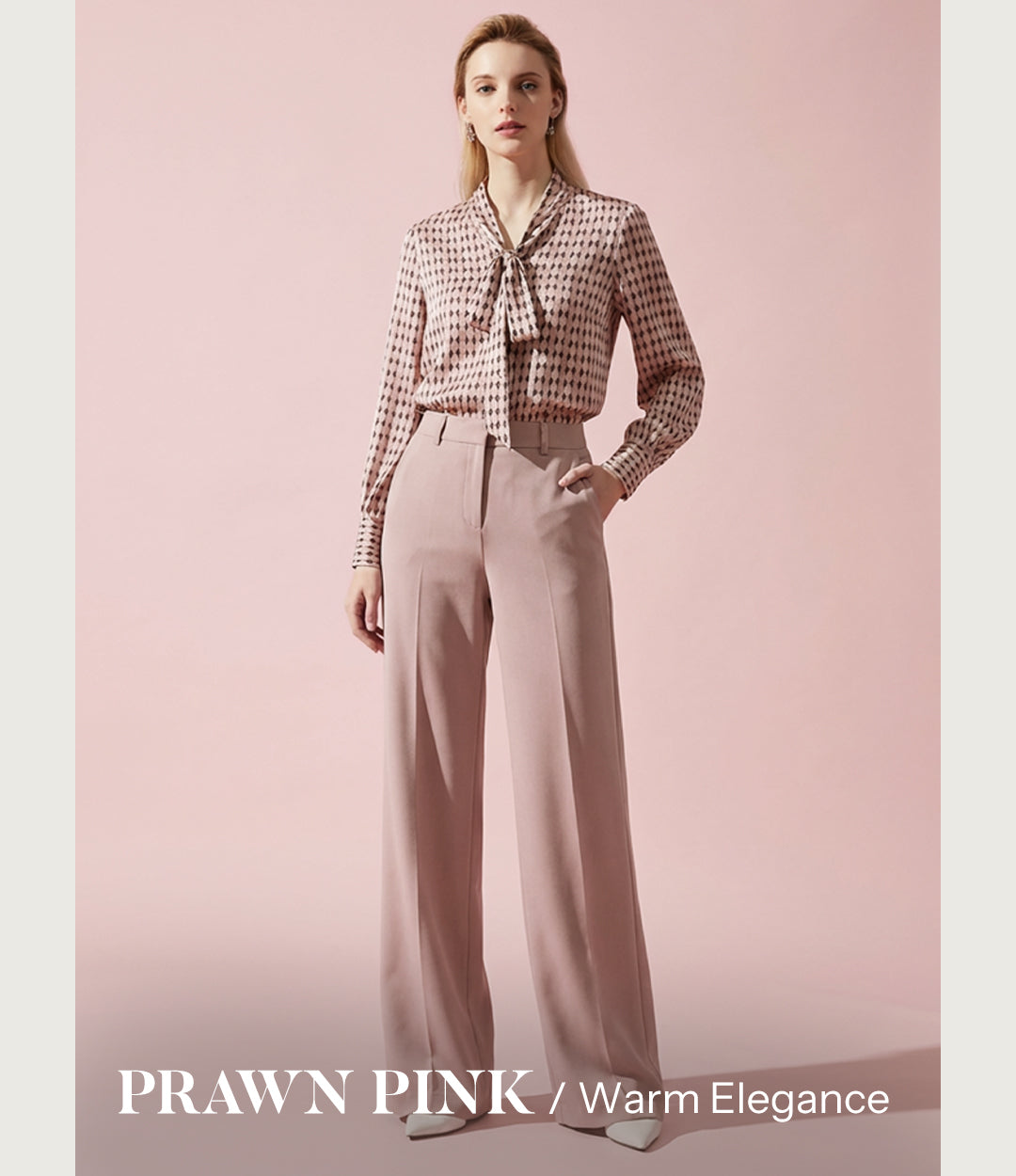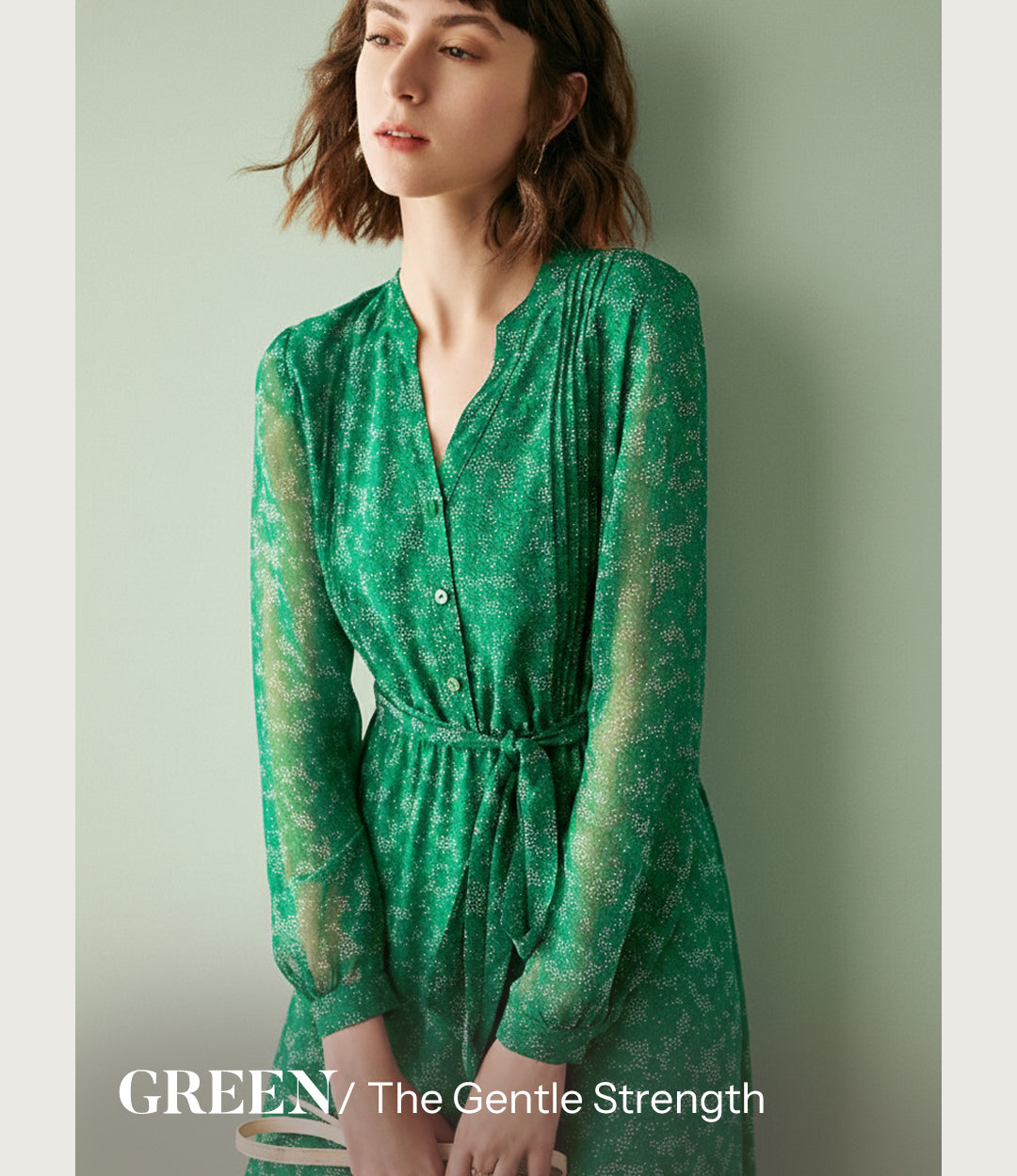Ink-Print Round Neck Waist-Defining Long-Sleeve Blouse