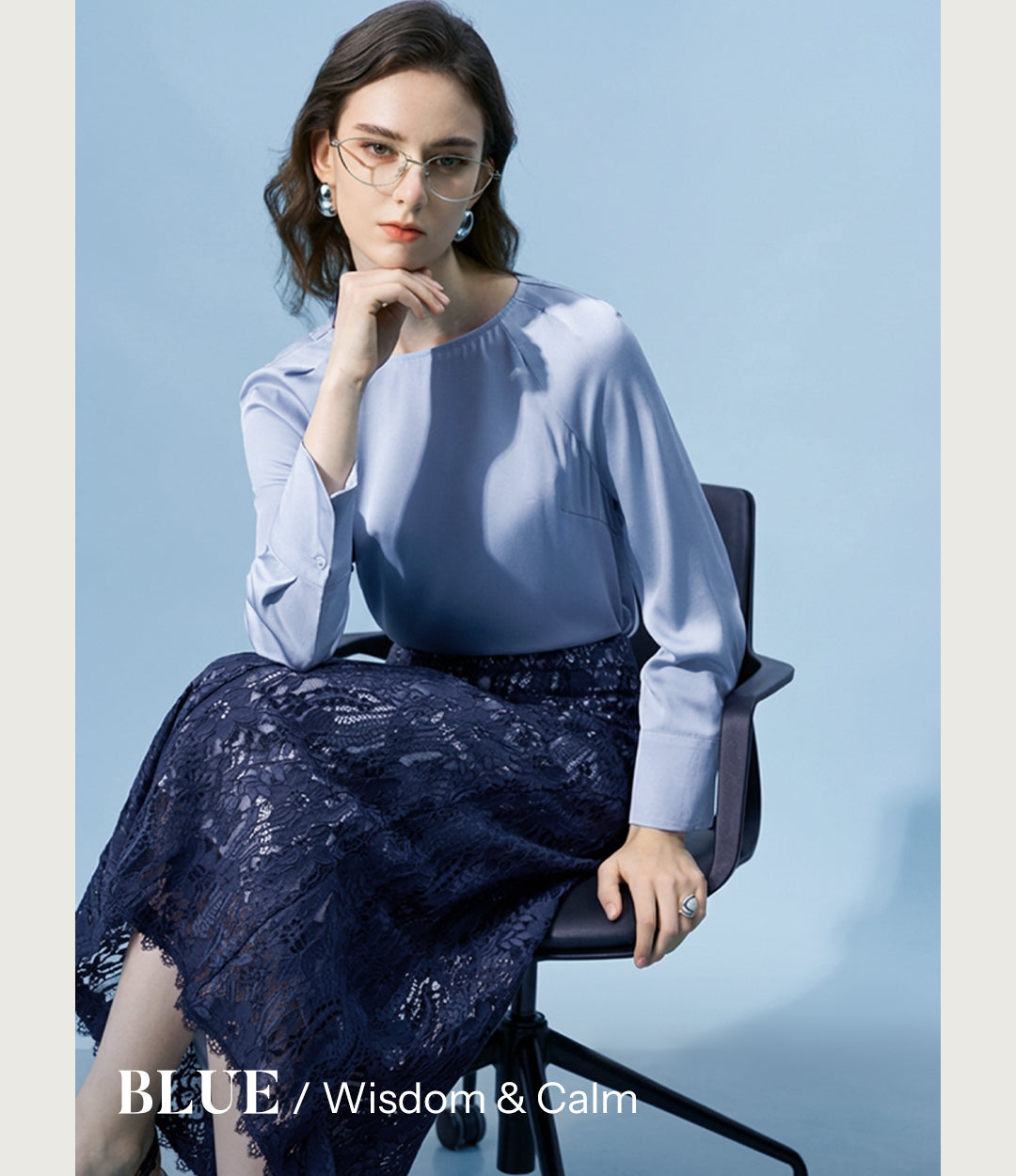 Mist Blue Embossed Leopard Shadow Pleated Dress